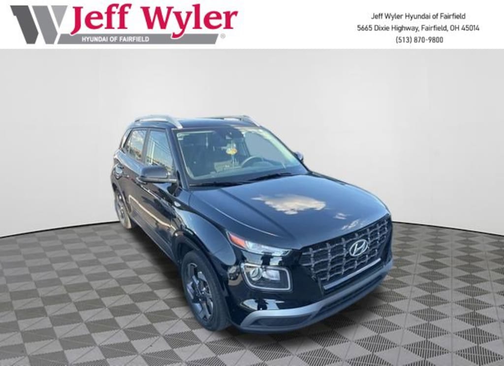 CARFAX One-Owner. Clean CARFAX. Jeff Wyler Hyundai of Fairfield is very proud to offer this gorgeous 2022 Hyundai Venue SEL in Black Noir Pearl. Well equipped with: Option Group 01, Hyundai Certified Used Vehicles Certified, Android Auto, Apple CarPlay, CALL NOW FOR YOUR VIP APPOINTMENT 513-870-9800, FULLY SERVICED w/RECORDS, GUARANTEED FINANCING!! NO MATTER YOUR SITUATION WE CAN GET AN APPROVAL!!, THE #1 Volume dealer in the region! Come see why for yourself Today!!, WE PAY MORE FOR YOUR TRADE!!, 4-Wheel Disc Brakes, 6 Speakers, 6.052 Axle Ratio, 6.5J x 17" Alloy Wheels, ABS brakes, Air Conditioning, Alloy wheels, AM/FM radio, Apple CarPlay & Android Auto, Auto High-beam Headlights, Automatic temperature control, Brake assist, Bumpers: body-color, Cargo Net, Cargo Tray, Carpeted Floor Mats, Cloth Seat Trim, Delay-off headlights, Driver door bin, Driver vanity mirror, Dual front impact airbags, Dual front side impact airbags, Electronic Stability Control, Front anti-roll bar, Front Bucket Seats, Front Center Armrest, Front wheel independent suspension, Fully automatic headlights, Illuminated entry, Leather Shift Knob, Leather steering wheel, Low tire pressure warning, Mudguards, Occupant sensing airbag, Outside temperature display, Overhead airbag, Overhead console, Panic alarm, Passenger door bin, Passenger vanity mirror, Power door mirrors, Power moonroof, Power steering, Power windows, Radio: AM/FM/HD Display Audio, Rear Seat Cup Holder, Rear window defroster, Rear window wiper, Remote keyless entry, Roof rack: rails only, Security system, Speed control, Speed-sensing steering, Split folding rear seat, Spoiler, Steering wheel mounted audio controls, Tachometer, Telescoping steering wheel, Tilt steering wheel, Traction control, Trip computer, and Variably intermittent wipers. Certified. TO CHECK ON THE AVAILABILITY OF THIS VEHICLE REACH OUT TO ONE OF OUR TEAM MEMBERS!! ALSO SHOP ONLINE AT https://www.jeffwylerhyundaioffairfield.com/ Proudly Serving: Cincinnati, Dayton, Columbus, Louisville, Lexington, Indianapolis, Hamilton, Florence, Alexandria, Beavercreek, Springdale, West Chester, Monroe, Fairfield, Kenwood, Newport and all of greater Cincinnati Ohio, Indiana, and Northern Kentucky.