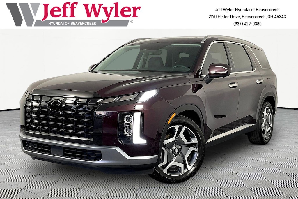 CARFAX One-Owner. Jeff Wyler Hyundai of Beavercreek is proud to offer this superb 2024 Hyundai Palisade Limited in Sierra Burgundy. Well equipped with: Option Group 01, 12 Speakers, 3.648 Axle Ratio, 3rd row seats: split-bench, 4-Wheel Disc Brakes, ABS brakes, Air Conditioning, Alloy wheels, AM/FM radio: SiriusXM, Apple CarPlay & Android Auto, Auto High-beam Headlights, Auto-dimming door mirrors, Auto-dimming Rear-View mirror, Auto-leveling suspension, Automatic temperature control, Brake assist, Bumpers: body-color, Cargo Net, Cargo Tray, Carpeted Floor Mats, Compass, Delay-off headlights, Driver door bin, Driver vanity mirror, Dual front impact airbags, Dual front side impact airbags, Electronic Stability Control, Emergency communication system, Exterior Parking Camera Rear, First Aid Kit, Four wheel independent suspension, Front anti-roll bar, Front Bucket Seats, Front Center Armrest, Front dual zone A/C, Front reading lights, Fully automatic headlights, Garage door transmitter: HomeLink, harman/kardon® Speakers, Heads-Up Display, Heated & Ventilated Front Bucket Seats, Heated door mirrors, Heated front seats, Heated rear seats, Heated steering wheel, Illuminated entry, Knee airbag, Leather Seat Trim, Low tire pressure warning, Memory seat, Navigation System, Occupant sensing airbag, Outside temperature display, Overhead airbag, Overhead console, Panic alarm, Passenger door bin, Passenger vanity mirror, Power door mirrors, Power driver seat, Power Liftgate, Power moonroof, Power passenger seat, Power steering, Power windows, Radio data system, Radio: AM/FM/MP3 Premium Audio System, Rain sensing wipers, Rear air conditioning, Rear anti-roll bar, Rear audio controls, Rear reading lights, Rear side impact airbag, Rear window defroster, Rear window wiper, Reclining 3rd row seat, Remote keyless entry, Roof Rack Cross Rails, Security system, Speed control, Speed-sensing steering, Split folding rear seat, Spoiler, Steering wheel mounted audio controls, Tachometer, Telescoping steering wheel, Tilt steering wheel, Traction control, Trip computer, Turn signal indicator mirrors, Variably intermittent wipers, Ventilated front seats, Ventilated rear seats, Wheel Locks, and Wheels: 20" x 7.5J Alloy.Come see the excitement at Jeff Wyler Hyundai of Beavercreek! Visit us online at www.jeffwylerhyundaiofbeavercreek.com Proudly Serving: Cincinnati, Dayton, Centeville, Ketttering, Moraine,Beavercreek, Xenia,Oakwood, Trotwood, Vandalia, Kettering, Wright Patterson, Riverside, Engelwood, Miamisburg, Huber Heights, Springboro, Brookville, Fairborn, West Carrollton, Yellow Springs, Bellbrook, Springfield Columbus, Hamilton, West Chester, Monroe, Fairfield. PROUDLY SERVING: CINCINNATI, DAYTON,COLUMBUS, LOUISVILLE, LEXINGTON, INDIANAPOLIS,HAMILTON, FLORENCE, ALEXANDRIA, BEAVERCREEK, SPRINGDALE, WEST CHESTER, MONROE, FAIRFIELD, KENWOOD, NEWPORT AND ALL OF GREATER CINCINNATI OHIO, INDIANA, AND NORTHERN KENTUCKY.