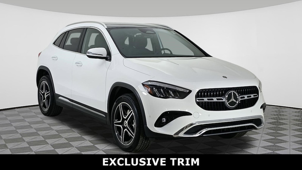 Polar White 2026 Mercedes-Benz GLA 250 4MATIC® 8 Speed Dual Clutch 2.0L I4 Turbocharged Active Parking Assist with PARKTRONIC, Advanced Sound System, Ambient Lighting, AMG® Line Lite, Exclusive Package, Fingerprint Scanner, Hands-Free Access, Heated Steering Wheel, Heated Washer System, KEYLESS GO®, KEYLESS GO® Comfort Package, LED Logo Projector, MBUX Navigation, Panoramic Sliding Sunroof, PARKTRONIC Parking Package with Active Park Assist, Power door mirrors, Roof Spoiler, Sun and Sound Package, Wheels: 19" AMG® Twin 5-Spoke with Black Accents, Wireless Charging.