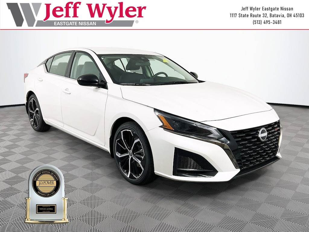 Pearl White Tricoat 2025 Nissan Altima 2.5 SR 2.5L 4-Cylinder DOHC 16V FWD CVT with Xtronic 27/37 City/Highway MPG Jeff Wyler Eastgate Auto Mall is pleased to offer this wonderful-looking 2025 Nissan Altima 2.5 SR in Pearl White Tricoat. Well equipped with: 4-Wheel Disc Brakes, 6 Speakers, ABS brakes, Air Conditioning, Alloy wheels, AM/FM radio: SiriusXM, Auto High-beam Headlights, Blind Spot Warning, Body-Colored Splash Guards, Brake assist, Bumpers: body-color, Clear Bumper Protector, Delay-off headlights, Driver door bin, Driver vanity mirror, Dual front impact airbags, Dual front side impact airbags, Electronic Stability Control, Four wheel independent suspension, Front anti-roll bar, Front Bucket Seats, Front Center Armrest, Front reading lights, Fully automatic headlights, Illuminated entry, Illuminated Kick Plates, Knee airbag, Leather Shift Knob, Low tire pressure warning, NissanConnect featuring Apple CarPlay and Android Auto, Occupant sensing airbag, Outside temperature display, Overhead airbag, Overhead console, Panic alarm, Passenger door bin, Passenger vanity mirror, Power door mirrors, Power driver seat, Power steering, Power windows, Premium Paint, Radio data system, Radio: AM/FM Audio System, Rear anti-roll bar, Rear Parking Sensors, Rear reading lights, Rear seat center armrest, Rear side impact airbag, Rear window defroster, Remote keyless entry, Security system, Speed control, Speed-sensing steering, Speed-Sensitive Wipers, Split folding rear seat, Sport Seat Trim, SR Floor Mats/Trunk Mat/Hideaway Nets, Steering wheel mounted audio controls, Tachometer, Telescoping steering wheel, Tilt steering wheel, Traction control, Trip computer, Trunk Organizer Tray, Unique Sport Seats, Variably intermittent wipers, and Wheels: 19" Sport Machined Alloy. 27/37 City/Highway MPG