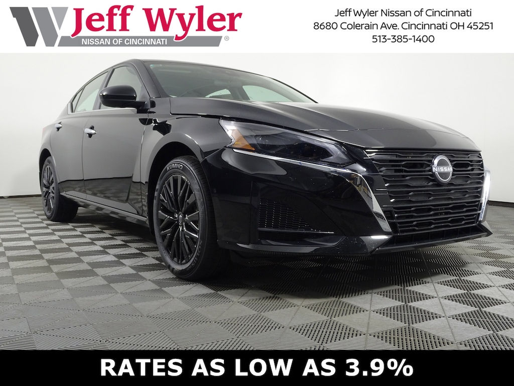 $2,882 off MSRP! Super Black Clearcoat 2025 Nissan Altima 2.5 SV AWD CVT with Xtronic Jeff Wyler Nissan of Cincinnati is proud to offer this wonderful-looking 2025 Nissan Altima 2.5 SV in Super Black Clearcoat. Well equipped with: SV Special Edition Package (Body-Color Outside Mirrors, Carbon Fiber Look Center Console Finisher, Dual Zone Automatic HVAC, NissanConnect, Rear Spoiler (Accessory Part), Remote Engine Start w/Intelligent Climate Control, Single Panel Moonroof, Visible Rear Exhaust w/Finisher, and Wheels: 17" Gloss Black Alloy), CVT with Xtronic, 17" Machined Alloy Wheels, 4-Wheel Disc Brakes, 6 Speakers, ABS brakes, Air Conditioning, Alloy wheels, AM/FM radio: SiriusXM, Auto High-beam Headlights, Blind Spot Warning, Body-Colored Splash Guards, Brake assist, Bumpers: body-color, Cloth Seat Trim, Delay-off headlights, Driver door bin, Driver vanity mirror, Dual front impact airbags, Dual front side impact airbags, Electronic Stability Control, Floor Mats/Trunk Mat/Hideaway Net, Four wheel independent suspension, Front anti-roll bar, Front Bucket Seats, Front Center Armrest, Front reading lights, Fully automatic headlights, Illuminated entry, Knee airbag, Low tire pressure warning, NissanConnect featuring Apple CarPlay and Android Auto, Occupant sensing airbag, Outside temperature display, Overhead airbag, Overhead console, Panic alarm, Passenger door bin, Passenger vanity mirror, Power door mirrors, Power driver seat, Power steering, Power windows, Radio data system, Radio: AM/FM Audio System, Rear anti-roll bar, Rear Parking Sensors, Rear reading lights, Rear seat center armrest, Rear side impact airbag, Rear window defroster, Remote keyless entry, Security system, Speed control, Speed-sensing steering, Speed-Sensitive Wipers, Split folding rear seat, Steering wheel mounted audio controls, Tachometer, Telescoping steering wheel, Tilt steering wheel, Traction control, Trip computer, Trunk Organizer Tray, and Variably intermittent wipers. 2.5L 4-Cylinder DOHC 16V CVT with Xtronic.25/34 City/Highway MPGWyler Family First Package Includes: NanoCure Appearance Protection: Exterior & Interior Chemical Sealant Applied to Protect Against Environmental Hazards (7 Year Warranty Coverage). Pulse- Rear end Collision Avoidance System Theft Deterrent Strategy gives you 5 Years of Coverage against vehicle Theft, Offering up to a $5,000 benefit.