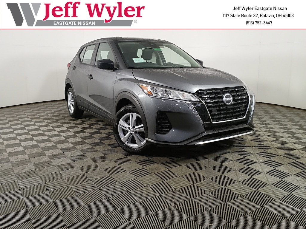Gun Metallic 2025 Nissan Kicks Play S 1.6L 4-Cylinder DOHC 16V FWD CVT with Xtronic 31/36 City/Highway MPG Jeff Wyler Eastgate Auto Mall is pleased to offer this fantastic 2025 Nissan Kicks Play S in Gun Metallic. Well equipped with: 16" Steel Wheels w/Full Covers, 6 Speakers, ABS brakes, Air Conditioning, AM/FM radio, Apple CarPlay/Android Auto, Auto High-beam Headlights, Blind Spot Warning, Brake assist, Bumpers: body-color, Carpeted Floor Mats w/Cargo Mat, Center Armrest w/Storage, Cloth Seat Trim w/Single Stitch, Driver door bin, Driver vanity mirror, Driver's Seat Mounted Armrest, Dual front impact airbags, Dual front side impact airbags, Electronic Stability Control, Front anti-roll bar, Front Bucket Seats, Front reading lights, Front wheel independent suspension, Fully automatic headlights, Illuminated entry, Knee airbag, Low tire pressure warning, Occupant sensing airbag, Outside temperature display, Overhead airbag, Panic alarm, Passenger door bin, Passenger vanity mirror, Power door mirrors, Power steering, Power windows, Radio data system, Radio: AM/FM Audio System, Rear Parking Sensors, Rear reading lights, Rear side impact airbag, Rear window defroster, Rear window wiper, Remote keyless entry, Speed control, Splash Guards Grain (4 Piece), Split folding rear seat, Sport steering wheel, Steering wheel mounted audio controls, Tachometer, Telescoping steering wheel, Tilt steering wheel, Traction control, Trip computer, USB Charging Cable Set - Nissan, and Variably intermittent wipers. 31/36 City/Highway MPG