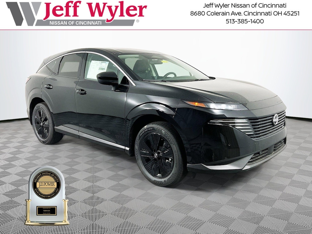Super Black 2025 Nissan Murano SV AWD 9-Speed Automatic Jeff Wyler Nissan of Cincinnati is very proud to offer this superb 2025 Nissan Murano SV in Super Black. Well equipped with: Cargo Package (3-Position Cargo Area Protector, Cargo Net, First Aid Kit, and Retractable Cargo Cover), 9-Speed Automatic, AWD, 20" Alloy Wheels, 4-Wheel Disc Brakes, 6 Speakers, ABS brakes, Air Conditioning, Alloy wheels, AM/FM radio: SiriusXM, Auto High-beam Headlights, Automatic temperature control, Brake assist, Bumpers: body-color, Carpeted Floor & Cargo Mats, Child-Seat-Sensing Airbag, Compass, Delay-off headlights, Driver door bin, Driver vanity mirror, Dual front impact airbags, Dual front side impact airbags, Electronic Stability Control, Four wheel independent suspension, Front anti-roll bar, Front Bucket Seats, Front Center Armrest, Front dual zone A/C, Front reading lights, Fully automatic headlights, Grained Splash Guards, Heated door mirrors, Heated Front Bucket Seats, Heated front seats, Illuminated entry, Knee airbag, Low tire pressure warning, Occupant sensing airbag, Outside temperature display, Overhead airbag, Overhead console, Panic alarm, Passenger door bin, Passenger vanity mirror, Power door mirrors, Power driver seat, Power Liftgate, Power passenger seat, Power steering, Power windows, PVC (Leatherette) Seat Trim, Radio data system, Radio: NissanConnect, Rear anti-roll bar, Rear reading lights, Rear seat center armrest, Rear side impact airbag, Rear window defroster, Rear window wiper, Remote keyless entry, Security system, Speed control, Speed-Sensitive Wipers, Split folding rear seat, Spoiler, Steering wheel mounted audio controls, Tachometer, Telescoping steering wheel, Tilt steering wheel, Traction control, Trip computer, Variably intermittent wipers, and Wireless Apple CarPlay/Wireless Android Auto. I4 9-Speed Automatic, AWD.Recent Arrival! 21/27 City/Highway MPGWyler Family First Package Includes: NanoCure Appearance Protection: Exterior & Interior Chemical Sealant Applied to Protect Against Environmental Hazards (7 Year Warranty Coverage). Pulse- Rear end Collision Avoidance System Theft Deterrent Strategy gives you 5 Years of Coverage against vehicle Theft, Offering up to a $5,000 benefit. Price includes: $1000 - Nissan MY25 Bonus Cash. Exp. 03/02/2026 $5000 - Nissan Customer Cash. Exp. 03/02/2026