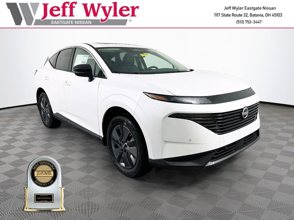 Priced below KBB Fair Purchase Price! Everest White Pearl Tricoat 2025 Nissan Murano SL I4 AWD 9-Speed Automatic 21/27 City/Highway MPG Jeff Wyler Eastgate Auto Mall is proud to offer this great 2025 Nissan Murano SL in Everest White Pearl Tricoat. Well equipped with: 10 Speakers, 20" Alloy Wheels, 4-Wheel Disc Brakes, ABS brakes, Air Conditioning, Alloy wheels, AM/FM radio: SiriusXM w/360L, Auto High-beam Headlights, Auto-dimming Rear-View mirror, Automatic temperature control, Brake assist, Bumpers: body-color, Carpeted Floor & Cargo Mats, Child-Seat-Sensing Airbag, Compass, Delay-off headlights, Driver door bin, Driver vanity mirror, Dual front impact airbags, Dual front side impact airbags, Electronic Stability Control, Emergency communication system: NissanConnect Services, Four wheel independent suspension, Front anti-roll bar, Front Bucket Seats, Front Center Armrest, Front dual zone A/C, Front reading lights, Fully automatic headlights, Garage door transmitter: myQ Connected Garage, Grained Splash Guards, Heated door mirrors, Heated Front Bucket Seats, Heated front seats, Heated steering wheel, Illuminated entry, Knee airbag, Low tire pressure warning, Memory seat, Navigation system: NissanConnect with Navigation and Services, Occupant sensing airbag, Outside temperature display, Overhead airbag, Overhead console, Panic alarm, Passenger door bin, Passenger vanity mirror, Power door mirrors, Power driver seat, Power Liftgate, Power moonroof: Panoramic, Power passenger seat, Power steering, Power windows, Premium Paint, PVC (Leatherette) Seat Trim, Radio data system, Radio: NissanConnect w/Hybrid Radio, Rear anti-roll bar, Rear reading lights, Rear seat center armrest, Rear side impact airbag, Rear window defroster, Rear window wiper, Remote keyless entry, Security system, Speed control, Speed-Sensitive Wipers, Split folding rear seat, Spoiler, Steering wheel mounted audio controls, Tachometer, Telescoping steering wheel, Tilt steering wheel, Traction control, Trip computer, Turn signal indicator mirrors, Variably intermittent wipers, and Wireless Apple CarPlay/Wireless Android Auto. 21/27 City/Highway MPG Price includes: $5000 - Nissan Customer Cash. Exp. 01/05/2026