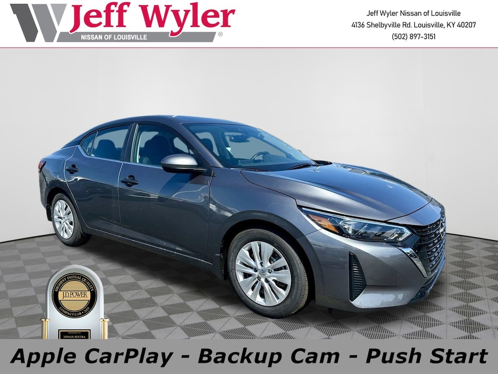 Jeff Wyler Nissan of Louisville is pumped up to offer this wonderful-looking 2025 Nissan Sentra S in Gun Metallic. Well equipped with: CVT with Xtronic, Charcoal Cloth, 4 Speakers, ABS brakes, Air Conditioning, AM/FM radio, Auto High-beam Headlights, Blind Spot Warning, Body Colored Splash Guards (4-Piece), Brake assist, Bumpers: body-color, Carpeted Floor Mats with Trunk Mat, Clear Rear Bumper Protector, Cloth Seat Trim, Delay-off headlights, Driver door bin, Driver vanity mirror, Dual front impact airbags, Dual front side impact airbags, Electronic Stability Control, Four wheel independent suspension, Front anti-roll bar, Front Bucket Seats, Front Center Armrest, Front reading lights, Fully automatic headlights, Illuminated entry, Knee airbag, Low tire pressure warning, NissanConnect featuring Apple CarPlay and Android Auto, Occupant sensing airbag, Outside temperature display, Overhead airbag, Overhead console, Panic alarm, Passenger door bin, Passenger vanity mirror, Power door mirrors, Power steering, Power windows, Radio data system, Radio: AM/FM with RDS/MP3/Aux-in, Rear anti-roll bar, Rear Parking Sensors, Rear side impact airbag, Rear window defroster, Remote keyless entry, Speed control, Speed-sensing steering, Split folding rear seat, Steering wheel mounted audio controls, Tachometer, Telescoping steering wheel, Tilt steering wheel, Traction control, Trip computer, Variably intermittent wipers, and Wheels: 16" Steel with Full Covers.2025 Nissan Sentra S Gun Metallic Wyler Family First Package Includes: NanoCure Appearance Protection: Exterior & Interior Chemical Sealant Applied to Protect Against Environmental Hazards (7 Year Warranty Coverage). Pulse- Rear end Collision Avoidance System Theft Deterrent Strategy gives you 5 Years of Coverage against vehicle Theft, Offering up to a $5,000 benefit. CVT with Xtronic, Charcoal Cloth. Customer's May Not Qualify for All Rebates. Prices Do Not Include Tax, License. $500 - Nissan MY25 Sentra Bonus Cash. Exp. 01/05/2026