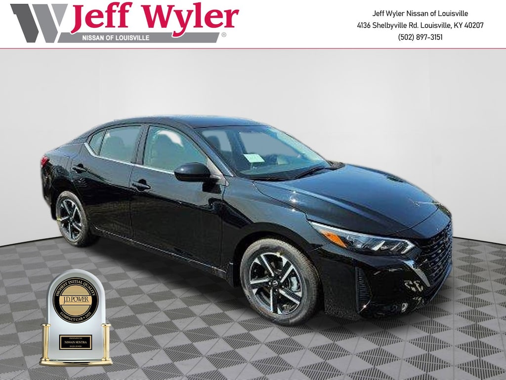 Jeff Wyler Nissan of Louisville is very proud to offer this good-looking 2025 Nissan Sentra SV in Super Black. Well equipped with: All-Weather Package (Dual Zone Auto Climate Control, Heated Exterior Mirrors, Heated Front Seats, Leather-Wrapped Heated Steering Wheel, and Remote Engine Start), CVT with Xtronic, Charcoal Cloth, 16" Alloy Wheels, 4-Wheel Disc Brakes, 8 Speakers, ABS brakes, Air Conditioning, Alloy wheels, AM/FM radio: SiriusXM, Auto High-beam Headlights, Blind Spot Warning, Body Colored Splash Guards (4-Piece), Brake assist, Bumpers: body-color, Carpeted Floor Mats with Trunk Mat, Clear Rear Bumper Protector, Delay-off headlights, Door Sill Plates, Driver door bin, Driver vanity mirror, Dual front impact airbags, Dual front side impact airbags, Electronic Stability Control, Four wheel independent suspension, Front anti-roll bar, Front Bucket Seats, Front Center Armrest, Front reading lights, Fully automatic headlights, Illuminated entry, Knee airbag, Low tire pressure warning, NissanConnect featuring Apple CarPlay and Android Auto, Occupant sensing airbag, Outside temperature display, Overhead airbag, Overhead console, Panic alarm, Passenger door bin, Passenger vanity mirror, Power door mirrors, Power steering, Power windows, Radio data system, Radio: AM/FM with RDS/MP3/Aux-in, Rear anti-roll bar, Rear Parking Sensors, Rear side impact airbag, Rear window defroster, Remote keyless entry, Security system, Speed control, Speed-sensing steering, Split folding rear seat, Steering wheel mounted audio controls, Tachometer, Telescoping steering wheel, Tilt steering wheel, Traction control, Trip computer, Upgraded Cloth Seat Trim, and Variably intermittent wipers.2025 Nissan Sentra SV Super Black Wyler Family First Package Includes: NanoCure Appearance Protection: Exterior & Interior Chemical Sealant Applied to Protect Against Environmental Hazards (7 Year Warranty Coverage). Pulse- Rear end Collision Avoidance System Theft Deterrent Strategy gives you 5 Years of Coverage against vehicle Theft, Offering up to a $5,000 benefit. CVT with Xtronic, Charcoal Cloth. Customer's May Not Qualify for All Rebates. Prices Do Not Include Tax, License. $500 - Nissan MY25 Sentra Bonus Cash. Exp. 01/05/2026