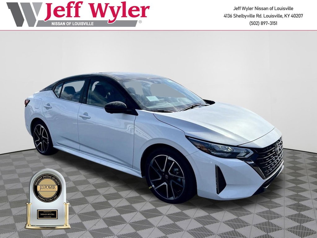Jeff Wyler Nissan of Louisville is pleased to offer this good-looking 2025 Nissan Sentra SR in Aspen White/Super Black. Well equipped with: SR Premium Package (6-Way Power Driver's Seat, Bose Premium Audio System with 8 Speakers, Intelligent Around View Monitor (I-AVM), Leather Heated Steering Wheel, Leatherette Seat Trim, NissanConnect Services, Power Sliding Glass Moonroof with Tilt Feature, Sunvisors with Illuminated Vanity Mirrors, and Wi-Fi Hotspot), CVT with Xtronic, Sport Cloth, 18" Alloy Wheels, 2-Tone Premium Paint, 4-Wheel Disc Brakes, 8 Speakers, ABS brakes, Air Conditioning, Alloy wheels, AM/FM radio: SiriusXM, Auto High-beam Headlights, Automatic temperature control, Blind Spot Warning, Brake assist, Bumpers: body-color, Carpeted Floor Mats with Trunk Mat, Clear Rear Bumper Protector, Delay-off headlights, Door Sill Plates, Driver door bin, Driver vanity mirror, Dual front impact airbags, Dual front side impact airbags, Electronic Stability Control, Four wheel independent suspension, Front anti-roll bar, Front Bucket Seats, Front Center Armrest, Front dual zone A/C, Front reading lights, Fully automatic headlights, Heated door mirrors, Heated Front Bucket Seats, Heated front seats, Illuminated entry, Knee airbag, Leather Shift Knob, Low tire pressure warning, NissanConnect featuring Apple CarPlay and Android Auto, Occupant sensing airbag, Outside temperature display, Overhead airbag, Overhead console, Panic alarm, Passenger door bin, Passenger vanity mirror, Power door mirrors, Power steering, Power windows, Radio data system, Radio: AM/FM with RDS/MP3/Aux-in, Rear anti-roll bar, Rear Parking Sensors, Rear seat center armrest, Rear side impact airbag, Rear window defroster, Remote keyless entry, Security system, Speed control, Speed-sensing steering, Split folding rear seat, Spoiler, Sport Cloth Seat Trim, Steering wheel mounted audio controls, Tachometer, Telescoping steering wheel, Tilt steering wheel, Traction control, Trip computer, Turn signal indicator mirrors, and Variably intermittent wipers.2025 Nissan Sentra SR Aspen White/Super Black Wyler Family First Package Includes: NanoCure Appearance Protection: Exterior & Interior Chemical Sealant Applied to Protect Against Environmental Hazards (7 Year Warranty Coverage). Pulse- Rear end Collision Avoidance System Theft Deterrent Strategy gives you 5 Years of Coverage against vehicle Theft, Offering up to a $5,000 benefit. CVT with Xtronic, Sport Cloth. Customer's May Not Qualify for All Rebates. Prices Do Not Include Tax, License. $500 - Nissan MY25 Sentra Bonus Cash. Exp. 01/05/2026