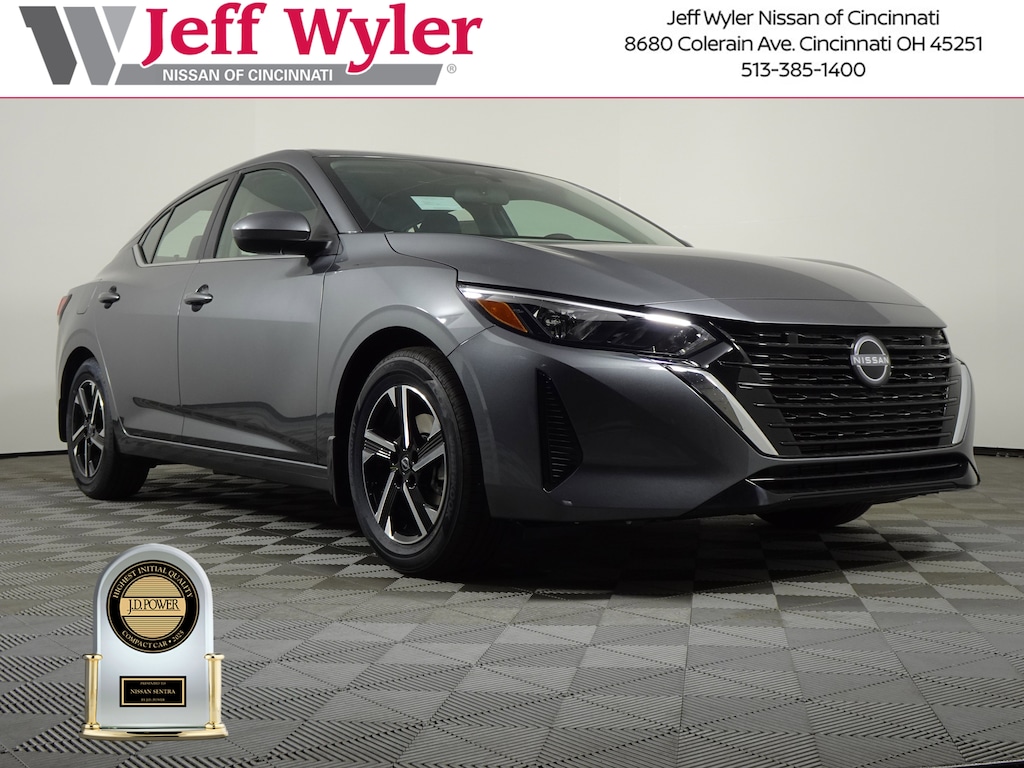 $3,319 off MSRP! Priced below KBB Fair Purchase Price! Gun Metallic 2025 Nissan Sentra SV FWD CVT with Xtronic Jeff Wyler Nissan of Cincinnati is excited to offer this great-looking 2025 Nissan Sentra SV in Gun Metallic. Well equipped with: CVT with Xtronic, Charcoal Cloth, 16" Alloy Wheels, 4-Wheel Disc Brakes, 8 Speakers, ABS brakes, Air Conditioning, Alloy wheels, AM/FM radio: SiriusXM, Auto High-beam Headlights, Blind Spot Warning, Body Colored Splash Guards (4-Piece), Brake assist, Bumpers: body-color, Carpeted Floor Mats with Trunk Mat, Clear Rear Bumper Protector, Delay-off headlights, Door Sill Plates, Driver door bin, Driver vanity mirror, Dual front impact airbags, Dual front side impact airbags, Electronic Stability Control, Four wheel independent suspension, Front anti-roll bar, Front Bucket Seats, Front Center Armrest, Front reading lights, Fully automatic headlights, Illuminated entry, Knee airbag, Low tire pressure warning, NissanConnect featuring Apple CarPlay and Android Auto, Occupant sensing airbag, Outside temperature display, Overhead airbag, Overhead console, Panic alarm, Passenger door bin, Passenger vanity mirror, Power door mirrors, Power steering, Power windows, Radio data system, Radio: AM/FM with RDS/MP3/Aux-in, Rear anti-roll bar, Rear Parking Sensors, Rear side impact airbag, Rear window defroster, Remote keyless entry, Security system, Speed control, Speed-sensing steering, Split folding rear seat, Steering wheel mounted audio controls, Tachometer, Telescoping steering wheel, Tilt steering wheel, Traction control, Trip computer, Upgraded Cloth Seat Trim, and Variably intermittent wipers. 2.0L I4 DOHC CVT with Xtronic, Charcoal Cloth.30/40 City/Highway MPGWyler Family First Package Includes: NanoCure Appearance Protection: Exterior & Interior Chemical Sealant Applied to Protect Against Environmental Hazards (7 Year Warranty Coverage). Pulse- Rear end Collision Avoidance System Theft Deterrent Strategy gives you 5 Years of Coverage against vehicle Theft, Offering up to a $5,000 benefit. Price includes: $500 - Nissan MY25 Sentra Bonus Cash. Exp. 01/05/2026