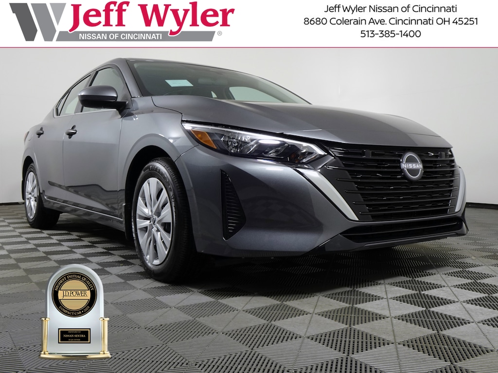 $3,296 off MSRP! Priced below KBB Fair Purchase Price! Gun Metallic 2025 Nissan Sentra S FWD CVT with Xtronic Jeff Wyler Nissan of Cincinnati is excited to offer this wonderful-looking 2025 Nissan Sentra S in Gun Metallic. Well equipped with: CVT with Xtronic, Charcoal Cloth, 4 Speakers, ABS brakes, Air Conditioning, AM/FM radio, Auto High-beam Headlights, Blind Spot Warning, Body Colored Splash Guards (4-Piece), Brake assist, Bumpers: body-color, Carpeted Floor Mats with Trunk Mat, Cloth Seat Trim, Delay-off headlights, Driver door bin, Driver vanity mirror, Dual front impact airbags, Dual front side impact airbags, Electronic Stability Control, Four wheel independent suspension, Front anti-roll bar, Front Bucket Seats, Front Center Armrest, Front reading lights, Fully automatic headlights, Illuminated entry, Knee airbag, Low tire pressure warning, NissanConnect featuring Apple CarPlay and Android Auto, Occupant sensing airbag, Outside temperature display, Overhead airbag, Overhead console, Panic alarm, Passenger door bin, Passenger vanity mirror, Power door mirrors, Power steering, Power windows, Radio data system, Radio: AM/FM with RDS/MP3/Aux-in, Rear anti-roll bar, Rear Parking Sensors, Rear side impact airbag, Rear Spoiler, Rear window defroster, Remote keyless entry, Speed control, Speed-sensing steering, Split folding rear seat, Steering wheel mounted audio controls, Tachometer, Telescoping steering wheel, Tilt steering wheel, Traction control, Trip computer, Variably intermittent wipers, and Wheels: 16" Steel with Full Covers. 2.0L I4 DOHC CVT with Xtronic, Charcoal Cloth.30/40 City/Highway MPGWyler Family First Package Includes: NanoCure Appearance Protection: Exterior & Interior Chemical Sealant Applied to Protect Against Environmental Hazards (7 Year Warranty Coverage). Pulse- Rear end Collision Avoidance System Theft Deterrent Strategy gives you 5 Years of Coverage against vehicle Theft, Offering up to a $5,000 benefit. Price includes: $500 - Nissan MY25 Sentra Bonus Cash. Exp. 01/05/2026 $500 - Nissan National Holiday Bonus Cash. Exp. 01/02/2026