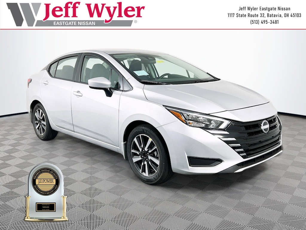 Priced below KBB Fair Purchase Price! Brilliant Silver Metallic 2025 Nissan Versa 1.6 SV 1.6L I4 DOHC 16V FWD CVT 32/40 City/Highway MPG Jeff Wyler Eastgate Auto Mall is honored to offer this fantastic 2025 Nissan Versa 1.6 SV in Brilliant Silver Metallic. Well equipped with: Trunk Package (Shopping Bag Hooks and Trunk Net), 16" Aluminum Alloy Wheels, 4 Speakers, ABS brakes, Air Conditioning, Alloy wheels, Apple CarPlay/Android Auto, Auto High-beam Headlights, Blind Spot Warning, Brake assist, Bumpers: body-color, Carpeted Floor Mats & Trunk Mat (5-Piece Set), Delay-off headlights, Driver door bin, Driver vanity mirror, Dual front impact airbags, Dual front side impact airbags, Electronic Stability Control, Front anti-roll bar, Front Bucket Seats, Front Center Armrest, Front reading lights, Front wheel independent suspension, Fully automatic headlights, Heated door mirrors, Illuminated entry, Knee airbag, Low tire pressure warning, Occupant sensing airbag, Outside temperature display, Overhead airbag, Panic alarm, Passenger door bin, Passenger vanity mirror, Power door mirrors, Power steering, Power windows, Radio data system, Radio: AM/FM Audio System, Rear Parking Sensors, Rear side impact airbag, Rear window defroster, Remote keyless entry, Speed control, Splash Guards, Split folding rear seat, Steering wheel mounted audio controls, Tachometer, Telescoping steering wheel, Tilt steering wheel, Traction control, Trip computer, Upgraded Cloth Seat Trim, and Variably intermittent wipers. 32/40 City/Highway MPG Price includes: $750 - Nissan MY25 Versa Bonus Cash (All Markets) - December. Exp. 01/05/2026