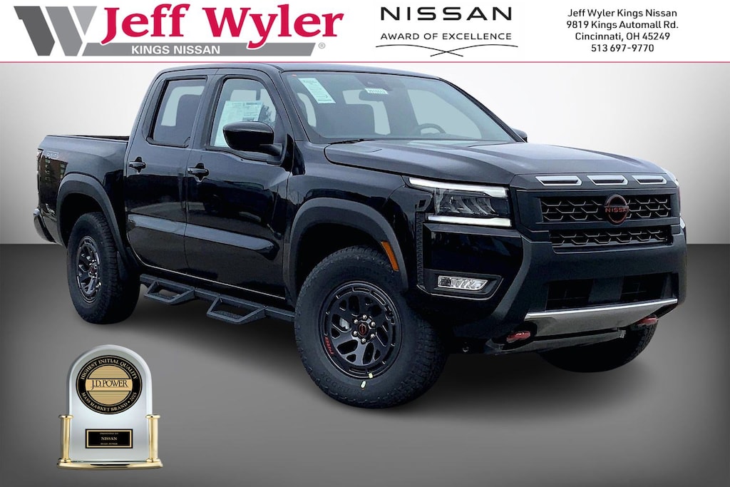 $5,362 off MSRP! Jeff Wyler Kings Nissan is pleased to offer this handsome 2026 Nissan Frontier PRO-4X in Super Black. Well equipped with: 4WD, 17" Painted Alloy Wheels, 3.692 Axle Ratio, 4-Wheel Disc Brakes, 6 Speakers, ABS brakes, Air Conditioning, Alloy wheels, AM/FM radio: SiriusXM, Anti-whiplash front head restraints, Auto High-beam Headlights, Automatic temperature control, Blind Spot Warning, Brake assist, Bumpers: body-color, Delay-off headlights, Driver door bin, Driver vanity mirror, Drop-in Bed Liner & Bumper Step, Dual front impact airbags, Dual front side impact airbags, Electronic Stability Control, Emergency communication system, Essentials Kit, Front anti-roll bar, Front Bucket Seats, Front Center Armrest, Front dual zone A/C, Front fog lights, Front reading lights, Front wheel independent suspension, Fully automatic headlights, Heated Front Bucket Seats, Heated front seats, Heated steering wheel, Illuminated entry, Knee airbag, Leather steering wheel, Low tire pressure warning, Mud Flaps, Occupant sensing airbag, Off-Road Style Step Rails, Overhead airbag, Overhead console, Panic alarm, Passenger door bin, Passenger vanity mirror, Power door mirrors, Power driver seat, Power passenger seat, Power steering, Power windows, PRO Embroidered Premium Cloth Seat Trim, Radio data system, Radio: SiriusXM/AM/FM/Auxiliary/USB Audio System, Rear anti-roll bar, Rear seat center armrest, Rear side impact airbag, Rear step bumper, Remote keyless entry, Security system, Speed control, Speed-sensing steering, Split folding rear seat, Steering wheel mounted audio controls, Tachometer, Telescoping steering wheel, Tilt steering wheel, Traction control, Trip computer, Variably intermittent wipers, Voltmeter, and Wireless Apple CarPlay/Wireless Android Auto.Wyler Family First Package Includes: NanoCure Appearance Protection: Exterior & Interior Chemical Sealant Applied to Protect Against Environmental Hazards (7 Year Warranty Coverage). Pulse- Rear end Collision Avoidance System Theft Deterrent Strategy gives you 5 Years of Coverage against vehicle Theft, Offering up to a $5,000 benefit. Used vehicles 10 years of age or newer with less than 100,000 miles are eligible for the Wyler Assurance Program, but eligible vehicles must pass our reconditioning process and multi-point inspection. Provided the vehicle passes inspection, vehicles will be eligible for the 6 month/6,000 mile limited warranty. The 6 month/6,000 mile limited warranty is NOT available on AS-IS vehicles, wholesale vehicles, lease buyback/pass-thru vehicles or un-inspected vehicles. Note that this program can also apply to vehicles where the remaining factory coverage is less than 6 months or 6,000 miles. Please check the Federal Trade Commission (FTC) Buyers guide on the vehicle for full details as to whether or not warranty coverage may apply. Contact Dealer for additional details. The Wyler Assurance 6 month/6,000 Mile limited warranty ends 6 months from the date of the Retail Purchase Agreement (BUYERS ORDER) or when the vehicle's odometer registers 6,000 additional miles to the mileage listed on the BUYERS ORDER, whichever comes first. Your Deductible - The warranty holder on your contract pays the first $100 of each covered repair. Price includes: $3500 - Nissan Customer Cash. Exp. 05/04/2026
