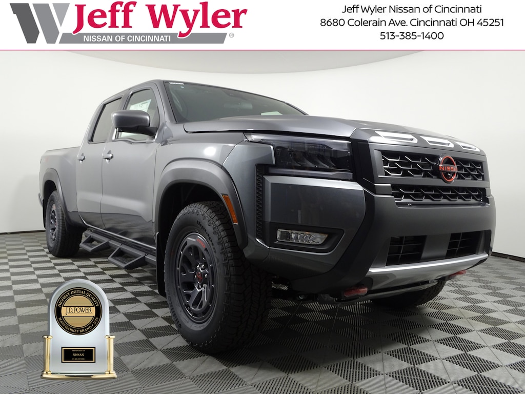 $5,407 off MSRP! Gun Metallic 2026 Nissan Frontier PRO-4X 4WD 9-Speed Automatic with Overdrive Jeff Wyler Nissan of Cincinnati is very proud to offer this wonderful 2026 Nissan Frontier PRO-4X in Gun Metallic. Well equipped with: PRO-4X Convenience Package (Heated Steering Wheel, Intelligent Around View Monitor (I-AVM), and Wireless Charging for Personal Devices), 4WD, 17" Painted Alloy Wheels, 3.692 Axle Ratio, 4-Wheel Disc Brakes, 6 Speakers, ABS brakes, Air Conditioning, Alloy wheels, AM/FM radio: SiriusXM, Anti-whiplash front head restraints, Auto High-beam Headlights, Automatic temperature control, Blind Spot Warning, Brake assist, Bumpers: body-color, Delay-off headlights, Driver door bin, Driver vanity mirror, Dual front impact airbags, Dual front side impact airbags, Electronic Stability Control, Electronic Tailgate Lock, Emergency communication system, Essentials Kit, Front anti-roll bar, Front Bucket Seats, Front Center Armrest, Front dual zone A/C, Front fog lights, Front reading lights, Front wheel independent suspension, Fully automatic headlights, Heated Front Bucket Seats, Heated front seats, Heated steering wheel, Illuminated entry, Knee airbag, Leather steering wheel, Low tire pressure warning, Mud Flaps, Occupant sensing airbag, Off-Road Style Step Rails, Overhead airbag, Overhead console, Panic alarm, Passenger door bin, Passenger vanity mirror, Power door mirrors, Power driver seat, Power passenger seat, Power steering, Power windows, PRO Embroidered Premium Cloth Seat Trim, Radio data system, Radio: SXM/AM/FM/AUX/USB Audio System, Rear anti-roll bar, Rear seat center armrest, Rear side impact airbag, Rear step bumper, Remote keyless entry, Security system, Speed control, Speed-sensing steering, Split folding rear seat, Steering wheel mounted audio controls, Tachometer, Telescoping steering wheel, Tilt steering wheel, Traction control, Trip computer, Variably intermittent wipers, Voltmeter, and Wireless Apple CarPlay/Wireless Android Auto. 3.8L DI DOHC 24V V6 4WD.Recent Arrival!Wyler Family First Package Includes: NanoCure Appearance Protection: Exterior & Interior Chemical Sealant Applied to Protect Against Environmental Hazards (7 Year Warranty Coverage). Pulse- Rear end Collision Avoidance System Theft Deterrent Strategy gives you 5 Years of Coverage against vehicle Theft, Offering up to a $5,000 benefit. Price includes: $1000 - Nissan MWR Frontier (Pro-4X and SV) Bonus Cash - February. Exp. 03/02/2026 $2500 - Nissan Customer Cash. Exp. 03/02/2026
