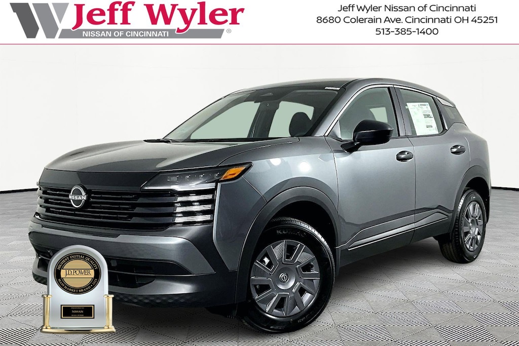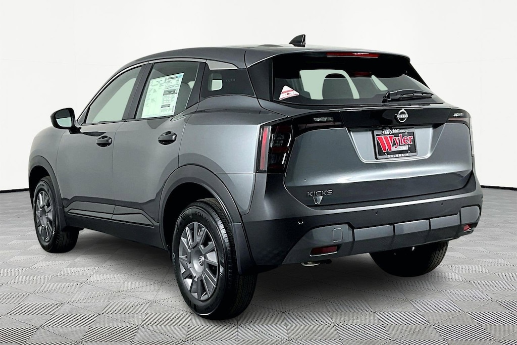 $993 off MSRP! Gun Metallic 2026 Nissan Kicks S FWD CVT with Xtronic Jeff Wyler Nissan of Cincinnati is proud to offer this gorgeous 2026 Nissan Kicks S in Gun Metallic. Well equipped with: 4 Speakers, 4-Wheel Disc Brakes, ABS brakes, Air Conditioning, AM/FM radio, Auto High-beam Headlights, Blind Spot Warning, Brake assist, Bumpers: body-color, Cloth Seat Trim, Driver door bin, Driver vanity mirror, Driver's Seat Mounted Armrest, Dual front impact airbags, Dual front side impact airbags, Electronic Stability Control, Emergency communication system, Exterior Parking Camera Rear, Front anti-roll bar, Front Bucket Seats, Front reading lights, Front wheel independent suspension, Fully automatic headlights, Illuminated entry, Knee airbag, Low tire pressure warning, NissanConnect featuring Apple CarPlay and Android Auto, Occupant sensing airbag, Outside temperature display, Overhead airbag, Panic alarm, Passenger door bin, Passenger vanity mirror, Power door mirrors, Power steering, Power windows, Radio data system, Radio: AM/FM/SiriusXM Audio System, Rear anti-roll bar, Rear reading lights, Rear side impact airbag, Rear window defroster, Rear window wiper, Remote keyless entry, Security system, Speed control, Speed-sensing steering, Split folding rear seat, Spoiler, Sport steering wheel, Steering wheel mounted audio controls, Tachometer, Telescoping steering wheel, Tilt steering wheel, Traction control, Trip computer, Variably intermittent wipers, and Wheels: 16" Steel with Full Covers. 2.0L DOHC28/35 City/Highway MPGWyler Family First Package Includes: NanoCure Appearance Protection: Exterior & Interior Chemical Sealant Applied to Protect Against Environmental Hazards (7 Year Warranty Coverage). Pulse- Rear end Collision Avoidance System Theft Deterrent Strategy gives you 5 Years of Coverage against vehicle Theft, Offering up to a $5,000 benefit.