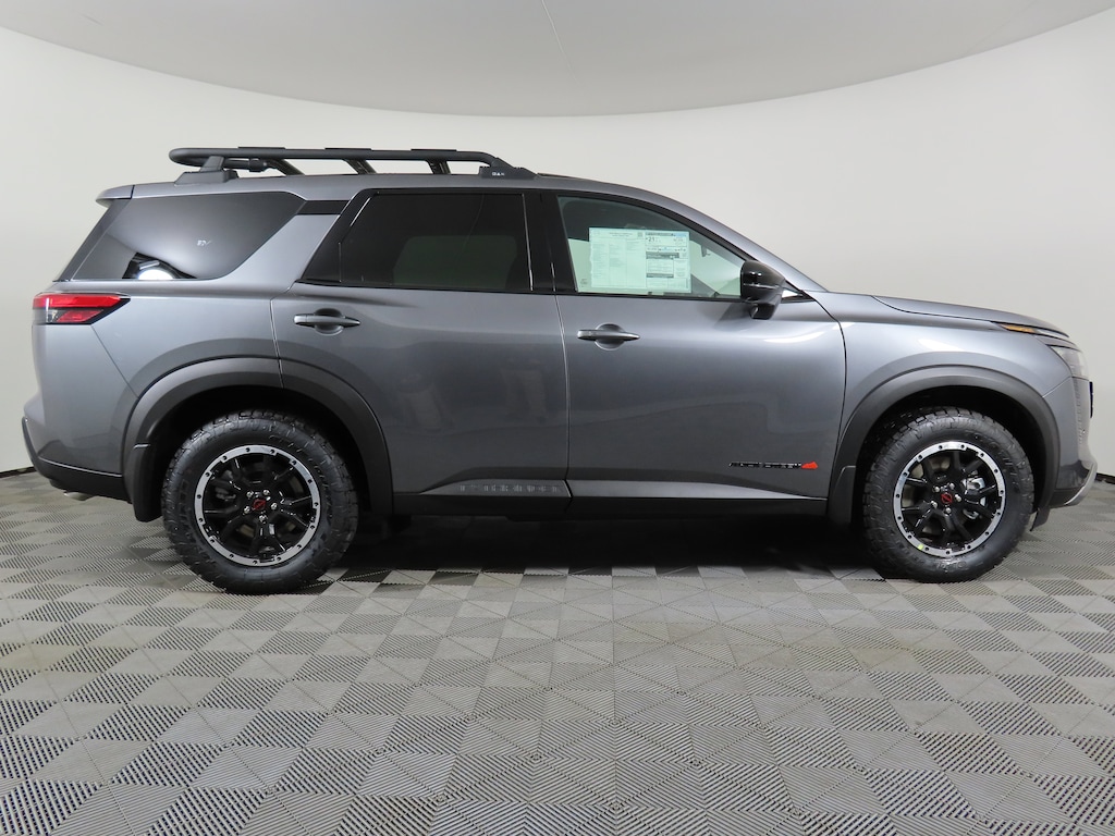 $5,183 off MSRP! Gun Metallic 2026 Nissan Pathfinder SV 4WD 9-Speed Automatic Jeff Wyler Nissan of Cincinnati is honored to offer this superb-looking 2026 Nissan Pathfinder SV in Gun Metallic. Well equipped with: 4WD, 18" Painted Alloy Wheels, 3rd row seats: bench, 4-Piece Black Splash Guards, 4-Wheel Disc Brakes, 6 Speakers, ABS brakes, Air Conditioning, Alloy wheels, AM/FM radio: SiriusXM w/360L, Auto High-beam Headlights, Automatic temperature control, Brake assist, Bumpers: body-color, Cloth Seating Surfaces, Delay-off headlights, Driver door bin, Driver vanity mirror, Dual front impact airbags, Dual front side impact airbags, Electronic Stability Control, Emergency communication system: NissanConnect Services, Four wheel independent suspension, Front anti-roll bar, Front Bucket Seats, Front Center Armrest, Front dual zone A/C, Front reading lights, Fully automatic headlights, Garage door transmitter: myQ Connected Garage, Heated door mirrors, Heated Front Bucket Seats, Heated front seats, Illuminated entry, Knee airbag, Low tire pressure warning, NissanConnect featuring Apple CarPlay and Android Auto, Occupant sensing airbag, Outside temperature display, Overhead airbag, Overhead console, Panic alarm, Passenger door bin, Passenger vanity mirror, Power door mirrors, Power driver seat, Power Liftgate, Power steering, Power windows, Radio data system, Radio: AM/FM Audio System with NissanConnect, Rear air conditioning, Rear anti-roll bar, Rear reading lights, Rear seat center armrest, Rear side impact airbag, Rear window defroster, Rear window wiper, Reclining 3rd row seat, Remote keyless entry, Security system, Speed control, Speed-sensing steering, Split folding rear seat, Spoiler, Steering wheel mounted audio controls, Tachometer, Telescoping steering wheel, Tilt steering wheel, Traction control, Trip computer, and Variably intermittent wipers. 3.5L V6 DOHC 4WD.Recent Arrival! 21/27 City/Highway MPGWyler Family First Package Includes: NanoCure Appearance Protection: Exterior & Interior Chemical Sealant Applied to Protect Against Environmental Hazards (7 Year Warranty Coverage). Pulse- Rear end Collision Avoidance System Theft Deterrent Strategy gives you 5 Years of Coverage against vehicle Theft, Offering up to a $5,000 benefit. Price includes: $2000 - Nissan Customer Cash. Exp. 03/02/2026