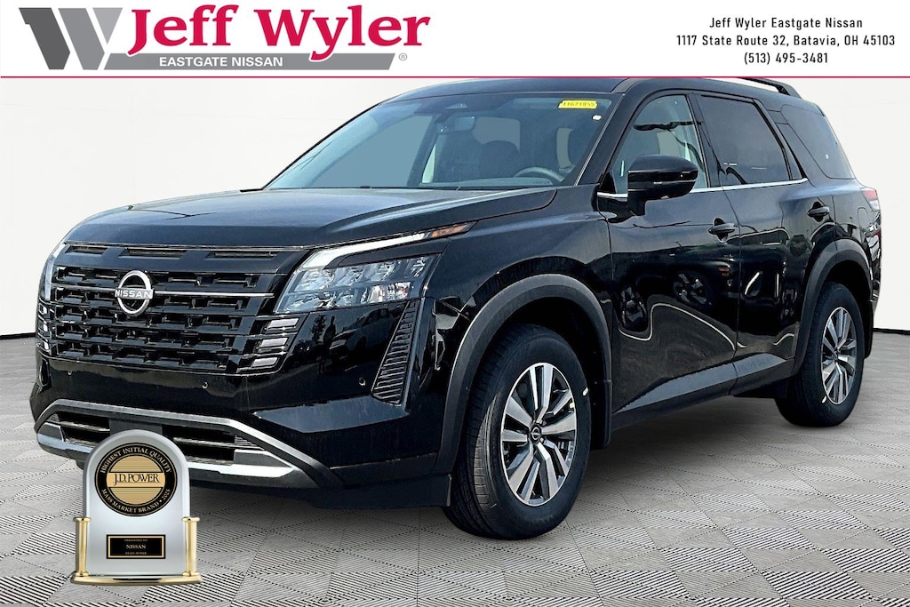 Priced below KBB Fair Purchase Price! Super Black 2026 Nissan Pathfinder SL 3.5L V6 DOHC 4WD 9-Speed Automatic 21/27 City/Highway MPG Jeff Wyler Eastgate Auto Mall is pleased to offer this gorgeous 2026 Nissan Pathfinder SL in Super Black. Well equipped with: 18" Machined Alloy Wheels, 3rd row seats: bench, 4-Piece Black Splash Guards, 4-Wheel Disc Brakes, 6 Speakers, ABS brakes, Air Conditioning, Alloy wheels, AM/FM radio: SiriusXM w/360L, Auto High-beam Headlights, Auto-dimming Rear-View mirror, Automatic temperature control, Bench Seat Carpeted Floor Mats, Brake assist, Bumpers: body-color, Delay-off headlights, Driver door bin, Driver vanity mirror, Dual front impact airbags, Dual front side impact airbags, Electronic Stability Control, Emergency communication system: NissanConnect Services, Four wheel independent suspension, Front anti-roll bar, Front Bucket Seats, Front Center Armrest, Front dual zone A/C, Front reading lights, Fully automatic headlights, Garage door transmitter: HomeLink, Heated door mirrors, Heated Front Bucket Seats, Heated front seats, Heated steering wheel, Illuminated entry, Knee airbag, Low tire pressure warning, NissanConnect featuring Apple CarPlay and Android Auto, Occupant sensing airbag, Outside temperature display, Overhead airbag, Overhead console, Panic alarm, Passenger door bin, Passenger vanity mirror, Power door mirrors, Power driver seat, Power Liftgate, Power steering, Power windows, Radio data system, Radio: AM/FM Audio System with NissanConnect, Rear air conditioning, Rear anti-roll bar, Rear reading lights, Rear seat center armrest, Rear side impact airbag, Rear window defroster, Rear window wiper, Reclining 3rd row seat, Remote keyless entry, Security system, Speed control, Speed-sensing steering, Split folding rear seat, Spoiler, Steering wheel mounted audio controls, Tachometer, TailorFit Appointed Seating Surfaces, Telescoping steering wheel, Tilt steering wheel, Traction control, Trip computer, Turn signal indicator mirrors, and Variably intermittent wipers. 21/27 City/Highway MPG Price includes: $3500 - Nissan Customer Cash. Exp. 05/04/2026