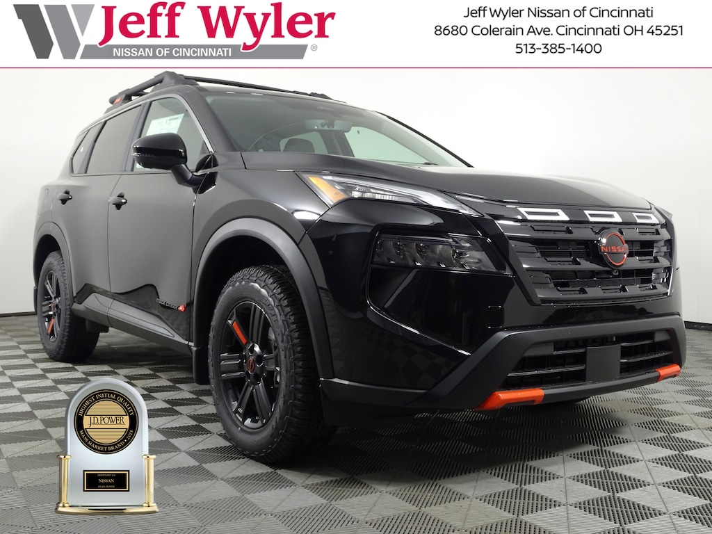 $5,976 off MSRP! Priced below KBB Fair Purchase Price! Super Black 2026 Nissan Rogue Rock Creek AWD CVT with Xtronic Jeff Wyler Nissan of Cincinnati is excited to offer this wonderful-looking 2026 Nissan Rogue Rock Creek in Super Black. Well equipped with: Rock Creek Premium Package (4-Way Power Passenger Seat, Auto-Dimming Inside Mirror, Interior LED Accent Lighting, Memory Driver Seat & Outside Mirrors, Motion-Activated Power Liftgate, Reverse Tilt-Down Outside Mirrors, and Wireless Charging Pad), AWD, 4-Wheel Disc Brakes, 6 Speakers, ABS brakes, Air Conditioning, Alloy wheels, AM/FM radio: Sirius, Apple CarPlay/Android Auto, Auto High-beam Headlights, Automatic temperature control, Black Splash Guards (Set of 4), Brake assist, Delay-off headlights, Driver door bin, Driver vanity mirror, Dual front impact airbags, Dual front side impact airbags, Electronic Stability Control, Emergency communication system: NissanConnect Services, Four wheel independent suspension, Frameless Rearview Mirror w/Universal Remote, Front anti-roll bar, Front Bucket Seats, Front Center Armrest, Front dual zone A/C, Front reading lights, Fully automatic headlights, Heated door mirrors, Heated Front Bucket Seats, Heated front seats, Illuminated entry, Knee airbag, Leatherette & Ballistic Nylon Seating, Low tire pressure warning, Occupant sensing airbag, Outside temperature display, Overhead airbag, Overhead console, Panic alarm, Passenger door bin, Passenger vanity mirror, Power door mirrors, Power driver seat, Power Liftgate, Power steering, Power windows, Radio data system, Radio: AM/FM NissanConnect, Rear anti-roll bar, Rear seat center armrest, Rear side impact airbag, Rear window defroster, Rear window wiper, Remote keyless entry, Retractable Cargo Cover, Roof rack, Speed control, Speed-sensing steering, Speed-Sensitive Wipers, Split folding rear seat, Spoiler, Steering wheel mounted audio controls, Tachometer, Telescoping steering wheel, Tilt steering wheel, Traction control, Trip computer, USB Charging Cable Set, Variably intermittent wipers, and Wheels: 17" Dark Painted Alloy. 1.5L DOHC AWD.27/32 City/Highway MPGWyler Family First Package Includes: NanoCure Appearance Protection: Exterior & Interior Chemical Sealant Applied to Protect Against Environmental Hazards (7 Year Warranty Coverage). Pulse- Rear end Collision Avoidance System Theft Deterrent Strategy gives you 5 Years of Coverage against vehicle Theft, Offering up to a $5,000 benefit. Price includes: $2500 - Nissan Customer Cash. Exp. 01/05/2026