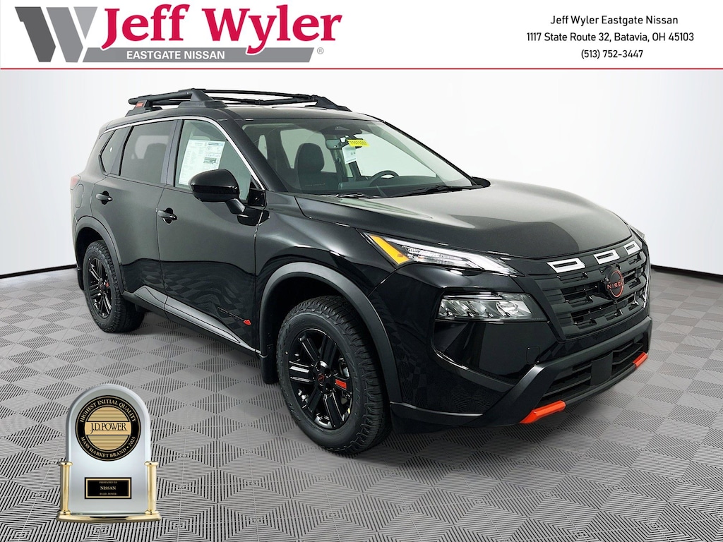 Priced below KBB Fair Purchase Price! Super Black 2026 Nissan Rogue Rock Creek 1.5L DOHC AWD CVT with Xtronic 27/32 City/Highway MPG Jeff Wyler Eastgate Auto Mall is delighted to offer this attractive-looking 2026 Nissan Rogue Rock Creek in Super Black. Well equipped with: 4-Wheel Disc Brakes, 6 Speakers, ABS brakes, Air Conditioning, Alloy wheels, AM/FM radio: Sirius, Apple CarPlay/Android Auto, Auto High-beam Headlights, Automatic temperature control, Black Splash Guards (Set of 4) (B92), Brake assist, Delay-off headlights, Driver door bin, Driver vanity mirror, Dual front impact airbags, Dual front side impact airbags, Electronic Stability Control, Emergency communication system: NissanConnect Services, Four wheel independent suspension, Frameless Rearview Mirror w/Universal Remote, Front anti-roll bar, Front Bucket Seats, Front Center Armrest, Front dual zone A/C, Front reading lights, Fully automatic headlights, Heated door mirrors, Heated Front Bucket Seats, Heated front seats, Illuminated entry, Knee airbag, Leatherette & Ballistic Nylon Seating, Low tire pressure warning, Occupant sensing airbag, Outside temperature display, Overhead airbag, Overhead console, Panic alarm, Passenger door bin, Passenger vanity mirror, Power door mirrors, Power driver seat, Power Liftgate, Power steering, Power windows, Radio data system, Radio: AM/FM NissanConnect, Rear anti-roll bar, Rear seat center armrest, Rear side impact airbag, Rear window defroster, Rear window wiper, Remote keyless entry, Roof rack, Speed control, Speed-sensing steering, Speed-Sensitive Wipers, Split folding rear seat, Spoiler, Steering wheel mounted audio controls, Tachometer, Telescoping steering wheel, Tilt steering wheel, Traction control, Trip computer, USB Charging Cable Set, Variably intermittent wipers, and Wheels: 17" Dark Painted Alloy. 27/32 City/Highway MPG Price includes: $2500 - Nissan Customer Cash. Exp. 01/05/2026
