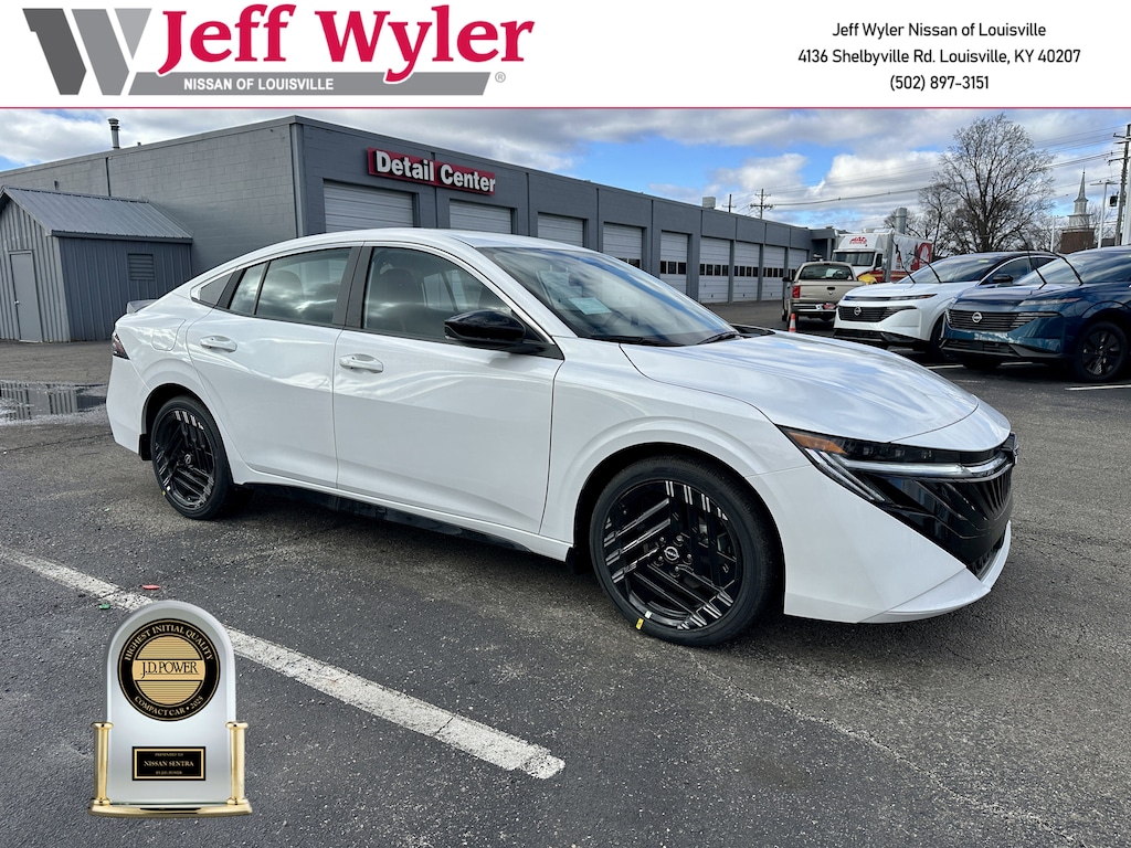 Recent Arrival! Jeff Wyler Nissan of Louisville is very proud to offer this beautiful 2026 Nissan Sentra SR in Aspen White Tricoat. Well equipped with: Floor Mat Package, SR All Weather Package (Dual Zone Auto Climate Control, Heated Front Seats, and Heated Steering Wheel), CVT with Xtronic, Sport Cloth, 18" Machined Alloy Wheels, 4-Wheel Disc Brakes, 6 Speakers, ABS brakes, Air Conditioning, Alloy wheels, AM/FM radio: Sirius, Auto High-beam Headlights, Automatic temperature control, Body Colored Splash Guards (4-Piece), Brake assist, Bumpers: body-color, Delay-off headlights, Driver door bin, Driver vanity mirror, Dual front impact airbags, Dual front side impact airbags, Electronic Stability Control, Emergency communication system: NissanConnect(R) Services powered by SiriusXM(R), Four wheel independent suspension, Front anti-roll bar, Front Bucket Seats, Front Center Armrest, Front reading lights, Fully automatic headlights, Garage door transmitter, Heated door mirrors, Illuminated entry, Illuminated Kick Plates, Interior Door Scuff Protection, Knee airbag, Leather Shift Knob, Leather steering wheel, Low tire pressure warning, Occupant sensing airbag, Outside temperature display, Overhead airbag, Overhead console, Panic alarm, Passenger door bin, Passenger vanity mirror, Power door mirrors, Power steering, Power windows, Premium Paint, Radio data system, Radio: AM/FM with RDS/MP3, Rear anti-roll bar, Rear seat center armrest, Rear side impact airbag, Rear window defroster, Remote keyless entry, Security system, Speed control, Speed-sensing steering, Split folding rear seat, Spoiler, Sport Cloth Seat Trim, Steering wheel mounted audio controls, Tachometer, Telescoping steering wheel, Tilt steering wheel, Traction control, Trip computer, Turn signal indicator mirrors, Variably intermittent wipers, and Wireless Apple CarPlay/Wireless Android Auto.2026 Nissan Sentra SR Aspen White Tricoat Wyler Family First Package Includes: NanoCure Appearance Protection: Exterior & Interior Chemical Sealant Applied to Protect Against Environmental Hazards (7 Year Warranty Coverage). Pulse- Rear end Collision Avoidance System Theft Deterrent Strategy gives you 5 Years of Coverage against vehicle Theft, Offering up to a $5,000 benefit. CVT with Xtronic, Sport Cloth.