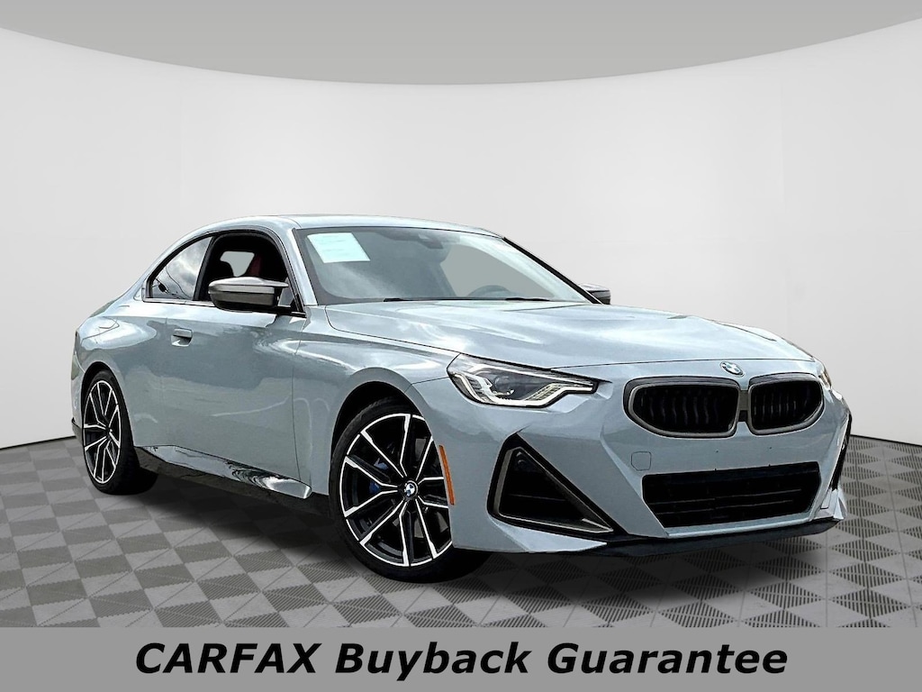 Jeff Wyler Nissan of Louisville is excited to offer this terrific 2022 BMW 2 Series M240i in Brooklyn Gray Metallic. ** ALL WHEEL DRIVE/AWD **, ** BLUETOOTH **, ** SUNROOF/MOONROOF **, ** BACKUP CAMERA **, ** LEATHER INTERIOR **, ** HEATED SEATS **, ** PUSH-BUTTON START **, ** GREAT FUEL ECONOMY **, ** EXCELLENT SERVICE HISTORY **, and ** HOME DELIVERY OPTIONS! ** Connected Package Pro, Premium Package (Adaptive Full LED Lights, Automatic High Beams, Head-Up Display, Heated Front Seats, Heated Steering Wheel, Live Cockpit Pro w/Navi, and Universal Garage-Door Opener), 10 Speakers, 4-Wheel Disc Brakes, ABS brakes, Adaptive suspension, Adjustable Seat Width, Air Conditioning, Alloy wheels, AM/FM radio: SiriusXM with 360L, Apple CarPlay & Android Auto Compatibility, Auto-dimming door mirrors, Auto-dimming Rear-View mirror, Automatic temperature control, BMW Assist eCall, BMW TeleServices, Brake assist, Bumpers: body-color, ConnectedDrive Services, Delay-off headlights, Driver door bin, Driver vanity mirror, Dual front impact airbags, Dual front side impact airbags, Electronic Stability Control, Emergency communication system: BMW Assist eCall, Exterior Parking Camera Rear, Four wheel independent suspension, Front anti-roll bar, Front Bucket Seats, Front Center Armrest, Front dual zone A/C, Front reading lights, Front Sport Seats, Fully automatic headlights, Heated door mirrors, Hi-Fi Sound System, Illuminated entry, Knee airbag, Leather Shift Knob, Low tire pressure warning, Lumbar Support, Memory seat, Navigation, Navigation System, Occupant sensing airbag, Outside temperature display, Overhead airbag, Panic alarm, Passenger door bin, Passenger vanity mirror, Perforated Sensatec Upholstery, Power door mirrors, Power driver seat, Power Front Seats, Power moonroof, Power passenger seat, Power steering, Power windows, Radio data system, Radio: AM/FM Audio System, Rain sensing wipers, Rear air conditioning, Rear anti-roll bar, Rear window defroster, Remote Engine Start, Remote keyless entry, Security system, SiriusXM Satellite Radio, Speed control, Speed-sensing steering, Speed-Sensitive Wipers, Split folding rear seat, Spoiler, Sport steering wheel, Steering wheel mounted audio controls, Tachometer, Telescoping steering wheel, Tilt steering wheel, Traction control, Trip computer, Turn signal indicator mirrors, Variably intermittent wipers, and Wheels: 19" x 8 M Double-Spoke Bi-Color Our PRE-OWNED vehicles are put through a rigorous 167- POINT QUALITY ASSURANCE INSPECTION along with an average amount of over $1,400.00 SPENT to recondition each vehicle so we can be sure to deliver you the highest quality vehicle like you deserve! ***ONLINE PRICE DOES NOT INCLUDE WYLER FAMILY FIRST PACKAGE*** Stop by 4136 Shelbyville Road to see for yourself, or give us a call @ 502-897-3151 to schedule your test drive! ** ALL WHEEL DRIVE/AWD **, ** BLUETOOTH **, ** SUNROOF/MOONROOF **, ** BACKUP CAMERA **, ** LEATHER INTERIOR **, ** HEATED SEATS **, ** PUSH-BUTTON START **, ** GREAT FUEL ECONOMY **, ** EXCELLENT SERVICE HISTORY **, 10 Speakers, 4-Wheel Disc Brakes, ABS brakes, Adaptive Full LED Lights, Adaptive suspension, Adjustable Seat Width, Air Conditioning, Alloy wheels, AM/FM radio: SiriusXM with 360L, Apple CarPlay & Android Auto Compatibility, Auto-dimming door mirrors, Auto-dimming Rear-View mirror, Automatic High Beams, Automatic temperature control, BMW Assist eCall, BMW TeleServices, Brake assist, Bumpers: body-color, Connected Package Pro, ConnectedDrive Services, Delay-off headlights, Driver door bin, Driver vanity mirror, Dual front impact airbags, Dual front side impact airbags, Electronic Stability Control, Emergency communication system: BMW Assist eCall, Exterior Parking Camera Rear, Four wheel independent suspension, Front anti-roll bar, Front Bucket Seats, Front Center Armrest, Front dual zone A/C, Front reading lights, Front Sport Seats, Fully automatic headlights, Head-Up Display, Heated door mirrors, Heated Front Seats, Heate