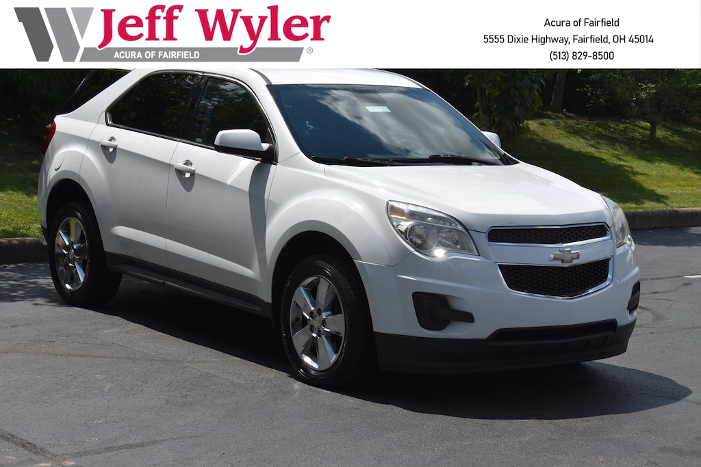 Jeff Wyler Acura of Fairfield is excited to offer this charming 2013 Chevrolet Equinox LT in Summit White. All-Star Package (DISC) (18" Chrome-Clad Aluminum Wheels), Driver Convenience Package (8-Way Power Driver Seat Adjuster and Remote Vehicle Starter System), Equipment Group 1LT (6 Speaker Audio System Feature and Manual Climate Control), 17" Aluminum Wheels, 3.23 Axle Ratio, 4-Wheel Disc Brakes, 6 Speakers, ABS brakes, Air Conditioning, Alloy wheels, AM/FM radio: SiriusXM, Bluetooth® For Phone, Brake assist, Bumpers: body-color, CD player, Chevrolet MyLink Touch, Compass, Delay-off headlights, Deluxe Front Bucket Seats, Driver door bin, Driver vanity mirror, Dual front impact airbags, Dual front side impact airbags, Electronic Stability Control, Emergency communication system: OnStar Directions & Connections, Exterior Parking Camera Rear, Four wheel independent suspension, Front anti-roll bar, Front Bucket Seats, Front Center Armrest, Front License Plate Bracket, Front reading lights, Fully automatic headlights, Heated door mirrors, Illuminated entry, Low tire pressure warning, Occupant sensing airbag, Outside temperature display, Overhead airbag, Panic alarm, Passenger door bin, Passenger vanity mirror, Power door mirrors, Power driver seat, Power steering, Power windows, Premium Cloth Seat Trim, Radio data system, Radio: AM/FM Stereo w/CD/MP3/Touch-Screen Display, Rear anti-roll bar, Rear seat center armrest, Rear window defroster, Rear window wiper, Remote keyless entry, Roof rack: rails only, Security system, SIRIUSXM Satellite Radio, Speed control, Speed-sensing steering, Split folding rear seat, Spoiler, Steering wheel mounted audio controls, Tachometer, Telescoping steering wheel, Tilt steering wheel, Traction control, Trip computer, and Variably intermittent wipers ***ONLINE PRICE DOES NOT INCLUDE WYLER FAMILY FIRST PACKAGE*** Odometer is 54306 miles below market average!Reviews: * If you want a small-but-not-too-small SUV with plenty of passenger space, a comfortable ride and good fuel economy, consider the 2013 Chevy Equinox. Those who need to tow will appreciate the 3,500-pound pull rating on V6 models. Source: KBB.com * Premium look inside and out; quiet cabin with lots of storage bins; spacious and adjustable backseat; comfortable highway ride. Source: EdmundsAwards: * JD Power Dependability Study * 2013 IIHS Top Safety PickProudly Serving: Cincinnati, Dayton, Columbus, Louisville, Lexington, Indianapolis, Hamilton, Florence, Alexandria, Beavercreek, Springdale, West Chester, Monroe, Fairfield, Kenwood, Newport and all of greater Cincinnati Ohio, Indiana, and Northern Kentucky.