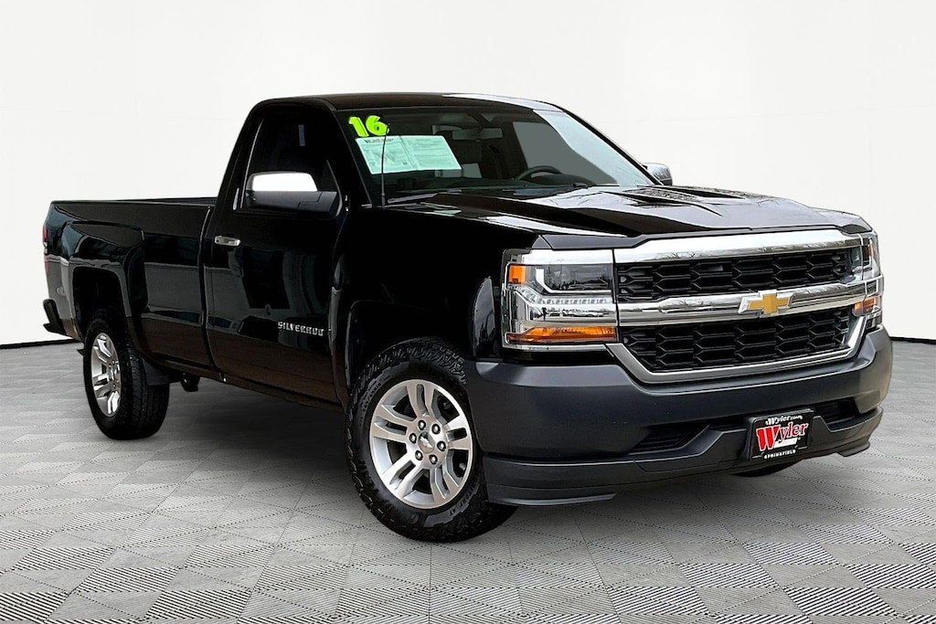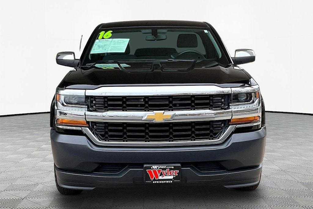 Jeff Wyler Springfield Auto Mall is excited to offer this terrific 2016 Chevrolet Silverado 1500 WT in Black. Well equipped with: 150 Amp Alternator, 3.23 Rear Axle Ratio, 4-Wheel Disc Brakes, 40/20/40 Front Split Bench Seat, 6 Speaker Audio System, ABS brakes, Air Conditioning, AM/FM radio, Black Power Adjustable Heated Outside Mirrors, Bluetooth® For Phone, Brake assist, Chrome Grille Surround, Cloth Seat Trim, Deep-Tinted Glass, Delay-off headlights, Driver door bin, Driver Information Center, Dual front impact airbags, Dual front side impact airbags, E85 FlexFuel Capable, Electronic Stability Control, Front anti-roll bar, Front Center Armrest w/Storage, Front Chrome Bumper, Front License Plate Kit, Front reading lights, Front wheel independent suspension, Fully automatic headlights, Graphite-Colored Rubberized-Vinyl Floor Covering, Heavy Duty Suspension, High-Intensity Discharge Headlights, Low tire pressure warning, Manual Tilt Wheel Steering Column, Occupant sensing airbag, OnStar 6 Months Guidance Plan, OnStar w/4G LTE, Overhead airbag, Overhead console, Passenger door bin, Passenger vanity mirror, Power steering, Power Windows w/Driver Express Up, Radio data system, Radio: AM/FM w/7" Diagonal Color Touch Screen, Rear Chrome Bumper, Rear step bumper, Remote Keyless Entry, Remote Locking Tailgate, Speed control, Speed-sensing steering, Tachometer, Tilt steering wheel, Traction control, Trip computer, Variably intermittent wipers, and Voltmeter. Ask about available certifications. Used vehicles 10 years of age or newer with less than 100,000 miles are eligible for the Wyler Assurance Program, but eligible vehicles must pass our reconditioning process and multi-point inspection. Provided the vehicle passes inspection, vehicles will be eligible for the 6 month/6,000 mile limited warranty. The 6 month/6,000 mile limited warranty is NOT available on AS-IS vehicles, wholesale vehicles, lease buyback/pass-thru vehicles or un-inspected vehicles. Note that this program can also apply to vehicles where the remaining factory coverage is less than 6 months or 6,000 miles. Please check the Federal Trade Commission (FTC) Buyers guide on the vehicle for full details as to whether or not warranty coverage may apply. Contact Dealer for additional details. The Wyler Assurance 6 month/6,000 Mile limited warranty ends 6 months from the date of the Retail Purchase Agreement (BUYERS ORDER) or when the vehicle's odometer registers 6,000 additional miles to the mileage listed on the BUYERS ORDER, whichever comes first. Your Deductible - The warranty holder on your contract pays the first $100 of each covered repair.