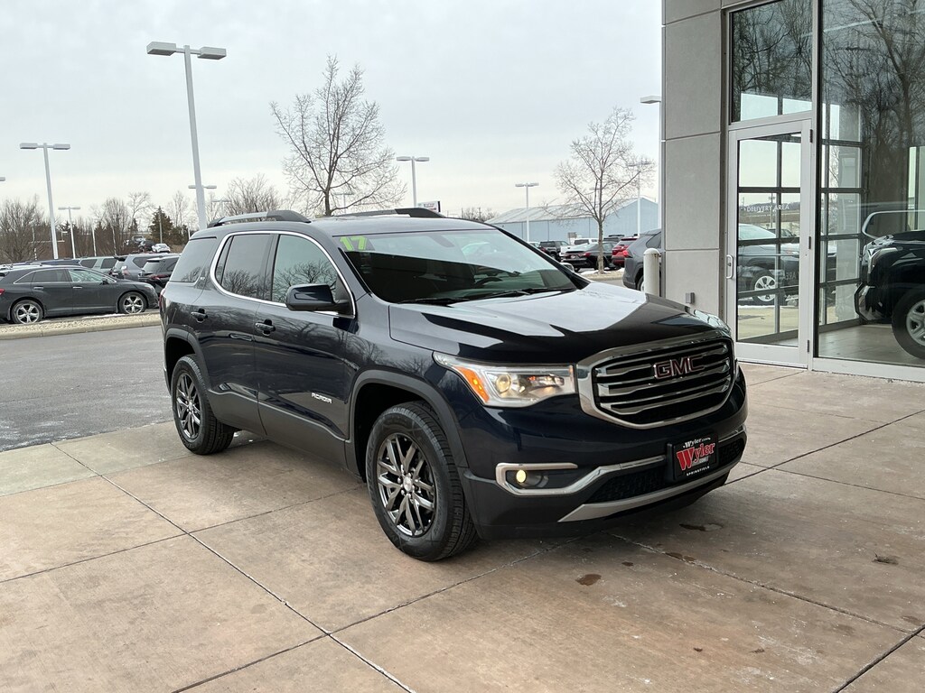Jeff Wyler Springfield Auto Mall is pleased to offer this great 2017 GMC Acadia SLT-1 in Dark Sapphire Blue Metallic. Well equipped with: Preferred Equipment Group 4SA, Trailering Package (Heavy Duty Cooling System), 170 Amp Alternator, 18" x 7.5" Aluminum (4) Wheels, 3rd row seats: split-bench, 4-Wheel Disc Brakes, 6-Passenger (2-2-2 Seating Configuration), 7-Passenger (2-3-2 Seating Configuration), 8 Speakers, ABS brakes, Air Conditioning, Alloy wheels, AM/FM radio: SiriusXM, Apple CarPlay/Android Auto, Auto-dimming door mirrors, Auto-dimming Rear-View mirror, Automatic temperature control, Brake assist, Bumpers: body-color, Compass, Delay-off headlights, Driver door bin, Driver vanity mirror, Dual front impact airbags, Dual front side impact airbags, Electronic Stability Control, Emergency communication system: OnStar Guidance, Exterior Parking Camera Rear, Four wheel independent suspension, Front anti-roll bar, Front Bucket Seats, Front Center Armrest, Front dual zone A/C, Front fog lights, Front License Plate Bracket, Front reading lights, Fully automatic headlights, Garage door transmitter, Heated door mirrors, Heated front seats, Illuminated entry, Knee airbag, Low tire pressure warning, Occupant sensing airbag, Outside temperature display, Overhead airbag, Overhead console, Panic alarm, Passenger door bin, Passenger vanity mirror, Perforated Leather-Appointed Seat Trim, Power door mirrors, Power driver seat, Power Liftgate, Power passenger seat, Power steering, Power windows, Premium audio system: IntelliLink, Radio data system, Radio: AM/FM 8" Diagonal Color Touch Screen, Rear air conditioning, Rear anti-roll bar, Rear reading lights, Rear window defroster, Rear window wiper, Remote keyless entry, Roof rack: rails only, Security system, SiriusXM Satellite Radio, Speed control, Speed-sensing steering, Spoiler, Steering wheel mounted audio controls, Tachometer, Telescoping steering wheel, Tilt steering wheel, Traction control, Trip computer, Variably intermittent wipers, and Voltmeter. Awards: * 2017 IIHS Top Safety Pick with optional front crash prevention * 2017 KBB.com Brand Image Awards Reviews: * Cabin remains quiet and comfortable on long road trips; plenty of engine and interior configurations to fit a variety of uses; attractive exterior and interior styling. Source: EdmundsAsk about available certifications. Used vehicles 10 years of age or newer with less than 100,000 miles are eligible for the Wyler Assurance Program, but eligible vehicles must pass our reconditioning process and multi-point inspection. Provided the vehicle passes inspection, vehicles will be eligible for the 6 month/6,000 mile limited warranty. The 6 month/6,000 mile limited warranty is NOT available on AS-IS vehicles, wholesale vehicles, lease buyback/pass-thru vehicles or un-inspected vehicles. Note that this program can also apply to vehicles where the remaining factory coverage is less than 6 months or 6,000 miles. Please check the Federal Trade Commission (FTC) Buyers guide on the vehicle for full details as to whether or not warranty coverage may apply. Contact Dealer for additional details. The Wyler Assurance 6 month/6,000 Mile limited warranty ends 6 months from the date of the Retail Purchase Agreement (BUYERS ORDER) or when the vehicle's odometer registers 6,000 additional miles to the mileage listed on the BUYERS ORDER, whichever comes first. Your Deductible - The warranty holder on your contract pays the first $100 of each covered repair.
