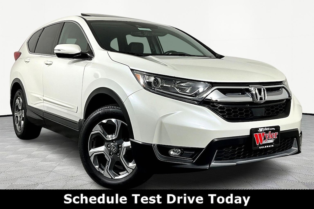 Jeff Wyler Honda of Colerain is pumped up to offer this charming 2018 Honda CR-V EX-L in White Diamond Pearl. Well equipped with: 18" Alloy Wheels, 4-Wheel Disc Brakes, 5.64 Axle Ratio, 8 Speakers, ABS brakes, Air Conditioning, Alloy wheels, AM/FM radio: SiriusXM, Apple CarPlay/Android Auto, Auto High-beam Headlights, Auto-dimming Rear-View mirror, Automatic temperature control, Blind Spot Information (BSI) System warning, Brake assist, Bumpers: body-color, Compass, Delay-off headlights, Driver door bin, Driver vanity mirror, Dual front impact airbags, Dual front side impact airbags, Electronic Stability Control, Exterior Parking Camera Rear, Four wheel independent suspension, Front anti-roll bar, Front Bucket Seats, Front Center Armrest, Front dual zone A/C, Front fog lights, Front reading lights, Fully automatic headlights, Garage door transmitter: HomeLink, Heated door mirrors, Heated Front Bucket Seats, Heated front seats, Illuminated entry, Leather Seat Trim, Leather Shift Knob, Low tire pressure warning, Memory seat, Occupant sensing airbag, Outside temperature display, Overhead airbag, Overhead console, Panic alarm, Passenger door bin, Passenger vanity mirror, Power door mirrors, Power driver seat, Power Liftgate, Power moonroof, Power passenger seat, Power steering, Power windows, Radio data system, Radio: AM/FM/SiriusXM Audio System, Rear anti-roll bar, Rear seat center armrest, Rear window defroster, Rear window wiper, Remote keyless entry, Security system, Speed control, Speed-sensing steering, Speed-Sensitive Wipers, Split folding rear seat, Spoiler, Steering wheel mounted audio controls, Tachometer, Telescoping steering wheel, Tilt steering wheel, Traction control, Trip computer, Turn signal indicator mirrors, and Variably intermittent wipers.