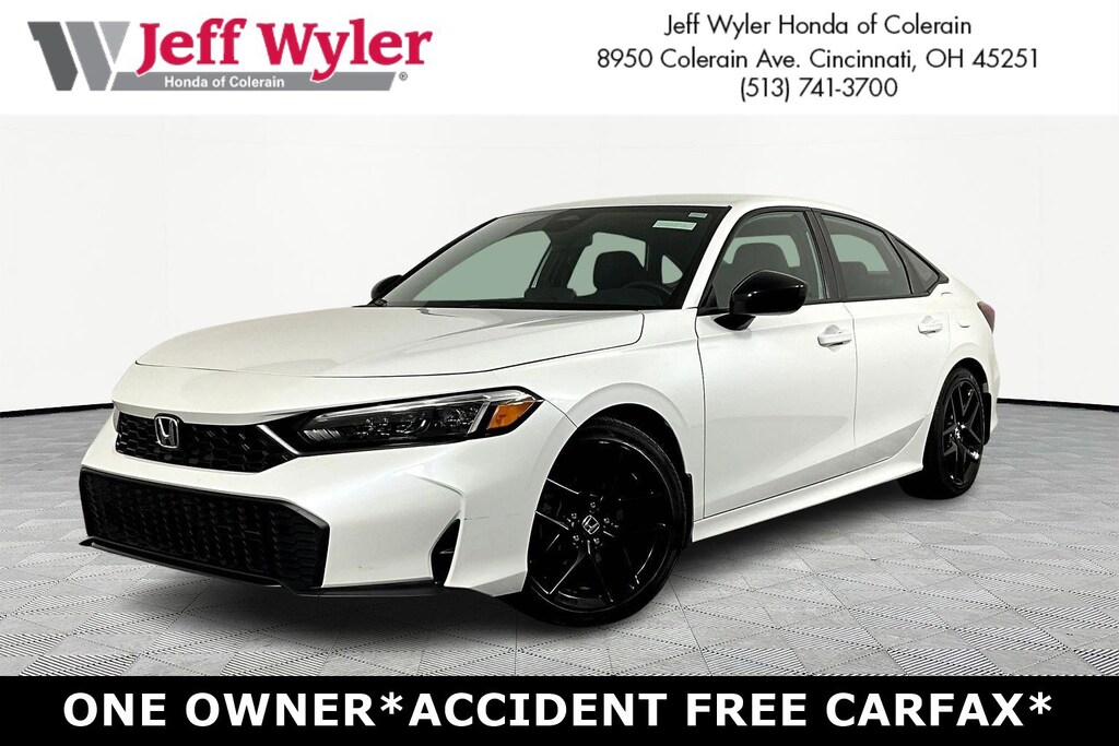 Jeff Wyler Honda of Colerain is very proud to offer this attractive 2025 Honda Civic Sport in Platinum White Pearl. Well equipped with: 4-Wheel Disc Brakes, 8 Speakers, ABS brakes, Adaptive Cruise Control: Adaptive Cruise Control (ACC) with Low-Speed Follow, Air Conditioning, Alloy wheels, AM/FM radio, Apple CarPlay/Android Auto, Auto High-beam Headlights, Automatic temperature control, Blind Spot Information (BSI) System warning, Brake assist, Bumpers: body-color, Cloth/Leatherette Seating Surfaces, Delay-off headlights, Driver door bin, Driver vanity mirror, Dual front impact airbags, Dual front side impact airbags, Electronic Stability Control, Emergency communication system: HondaLink, Exterior Parking Camera Rear, Four wheel independent suspension, Front anti-roll bar, Front Bucket Seats, Front Center Armrest, Front reading lights, Fully automatic headlights, Heated door mirrors, Illuminated entry, Knee airbag, Leather Shift Knob, Leather steering wheel, Low tire pressure warning, Occupant sensing airbag, Outside temperature display, Overhead airbag, Panic alarm, Passenger door bin, Passenger vanity mirror, Power door mirrors, Power steering, Power windows, Radio data system, Radio: 180-Watt Audio System, Rear anti-roll bar, Rear seat center armrest, Rear side impact airbag, Rear window defroster, Remote keyless entry, Security system, Speed control, Speed-sensing steering, Split folding rear seat, Steering wheel mounted audio controls, Tachometer, Telescoping steering wheel, Tilt steering wheel, Traction control, Trip computer, and Wheels: 18" Gloss Black Alloy.