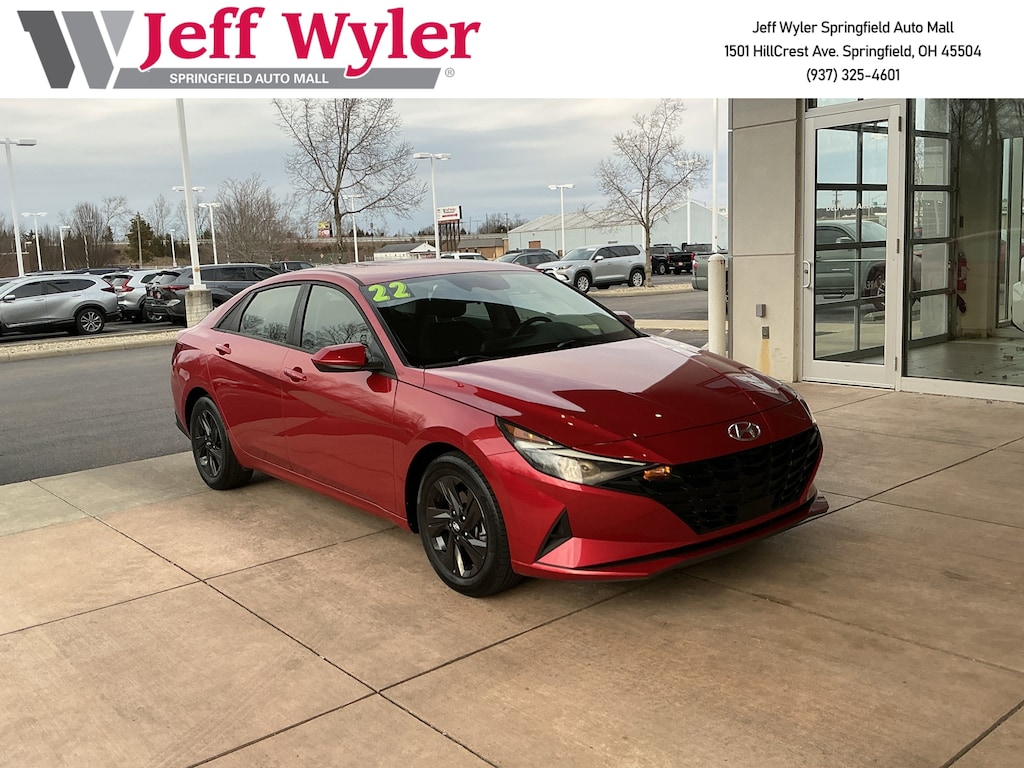 Jeff Wyler Springfield Auto Mall is proud to offer this superb-looking 2022 Hyundai Elantra SEL in Calypso Red. Well equipped with: Convenience Package, Preferred Accessory Package (First Aid Kit), 16" x 6.5J Alloy Wheels, 4-Wheel Disc Brakes, 6 Speakers, ABS brakes, Air Conditioning, Alloy wheels, AM/FM radio: SiriusXM, Apple CarPlay & Android Auto, Auto High-beam Headlights, Automatic temperature control, Brake assist, Bumpers: body-color, Cargo Net, Carpeted Floor Mats, Cloth Seat Trim, Delay-off headlights, Driver door bin, Driver vanity mirror, Dual front impact airbags, Dual front side impact airbags, Electronic Stability Control, Emergency communication system: Blue Link Connected Car Service (3-year complimentary subscription), Exterior Parking Camera Rear, Front anti-roll bar, Front Bucket Seats, Front Center Armrest, Front dual zone A/C, Front reading lights, Front wheel independent suspension, Fully automatic headlights, Illuminated entry, Low tire pressure warning, Occupant sensing airbag, Outside temperature display, Overhead airbag, Overhead console, Panic alarm, Passenger door bin, Passenger vanity mirror, Power door mirrors, Power steering, Power windows, Radio: AM/FM/HD/SiriusXM Display Audio, Rear window defroster, Remote keyless entry, Security system, Speed control, Speed-sensing steering, Steering wheel mounted audio controls, Tachometer, Telescoping steering wheel, Tilt steering wheel, Traction control, Trip computer, and Variably intermittent wipers. Ask about available certifications. Used vehicles 10 years of age or newer with less than 100,000 miles are eligible for the Wyler Assurance Program, but eligible vehicles must pass our reconditioning process and multi-point inspection. Provided the vehicle passes inspection, vehicles will be eligible for the 6 month/6,000 mile limited warranty. The 6 month/6,000 mile limited warranty is NOT available on AS-IS vehicles, wholesale vehicles, lease buyback/pass-thru vehicles or un-inspected vehicles. Note that this program can also apply to vehicles where the remaining factory coverage is less than 6 months or 6,000 miles. Please check the Federal Trade Commission (FTC) Buyers guide on the vehicle for full details as to whether or not warranty coverage may apply. Contact Dealer for additional details. The Wyler Assurance 6 month/6,000 Mile limited warranty ends 6 months from the date of the Retail Purchase Agreement (BUYERS ORDER) or when the vehicle's odometer registers 6,000 additional miles to the mileage listed on the BUYERS ORDER, whichever comes first. Your Deductible - The warranty holder on your contract pays the first $100 of each covered repair.