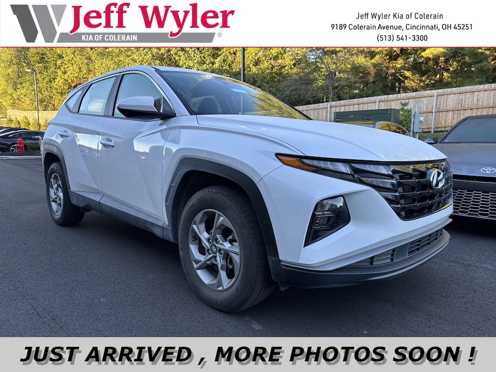 Jeff Wyler Kia of Colerain is honored to offer this fantastic-looking 2023 Hyundai Tucson SE in Serenity White Pearl. Option Group 01, 3.648 Axle Ratio, 4-Wheel Disc Brakes, 6 Speakers, ABS brakes, Air Conditioning, Alloy wheels, AM/FM radio, Apple CarPlay & Android Auto, Auto High-beam Headlights, Brake assist, Bumpers: body-color, Cargo Cover, Cargo Tray, Carpeted Floor Mats, Delay-off headlights, Driver door bin, Driver vanity mirror, Dual front impact airbags, Dual front side impact airbags, Electronic Stability Control, First Aid Kit, Four wheel independent suspension, Front anti-roll bar, Front Bucket Seats, Front Center Armrest, Front reading lights, Fully automatic headlights, Illuminated entry, Low tire pressure warning, Occupant sensing airbag, Outside temperature display, Overhead airbag, Overhead console, Panic alarm, Passenger door bin, Passenger vanity mirror, Power door mirrors, Power steering, Power windows, Radio data system, Radio: AM/FM/HD Audio System, Rear anti-roll bar, Rear seat center armrest, Rear window defroster, Rear window wiper, Remote keyless entry, Security system, Speed control, Split folding rear seat, Spoiler, Stain & Odor Resistant Cloth Seat Trim, Steering wheel mounted audio controls, Tachometer, Telescoping steering wheel, Tilt steering wheel, Traction control, Trip computer, Variably intermittent wipers, and Wheels: 17" x 7.0J" Alloy Our PRE-OWNED vehicles are put through a rigorous 167- POINT QUALITY ASSURANCE INSPECTION along with an average amount of over $1,400.00 SPENT to recondition each vehicle so we can be sure to deliver you the highest quality vehicle like you deserve! ***ONLINE PRICE DOES NOT INCLUDE WYLER FAMILY FIRST PACKAGE***