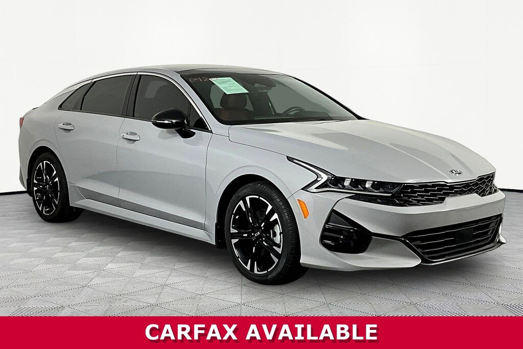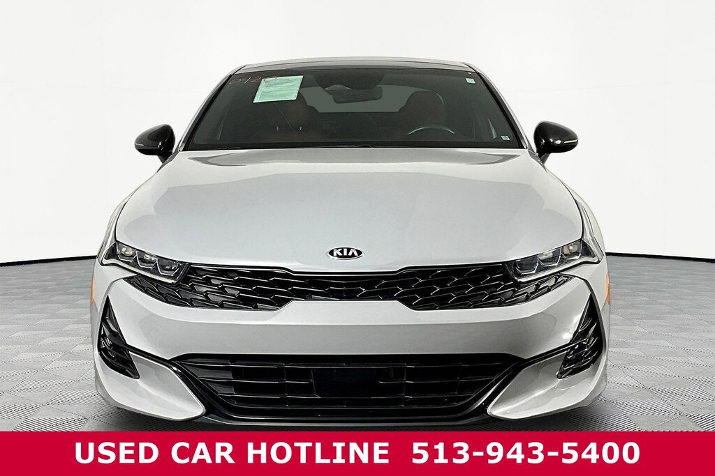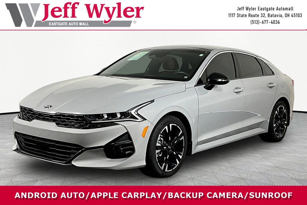 Jeff Wyler Eastgate Auto Mall is pumped up to offer this terrific-looking 2021 Kia K5 GT-Line in Wolf Gray. Well equipped with: GT-Line AWD Special Edition Package (Forward Collision Avoidance-Assist - Cyclist, Forward Collision Avoidance-Assist - Junction Turn, Gloss Black Pillar & Door Frame Cover, Highway Driving Assist, Leatherette Seat Trim, LED Interior Lighting, LED Projection Headlights, Navigation-Based Smart Cruise Control - Curve, Panoramic Sunroof, Radio: AM/FM/MP3 Audio System w/Navigation, Smart Cruise Control w/Stop & Go, and Wireless Charger), GT-Line Red Interior Package, 4-Wheel Disc Brakes, 6 Speakers, ABS brakes, Air Conditioning, Alloy wheels, AM/FM radio: SiriusXM, Apple CarPlay & Android Auto, Auto High-beam Headlights, Automatic temperature control, Brake assist, Bumpers: body-color, Carpeted Floor Mats, Cloth/Leatherette Seat Trim, Delay-off headlights, Driver door bin, Driver vanity mirror, Dual front impact airbags, Dual front side impact airbags, Electronic Stability Control, Four wheel independent suspension, Front anti-roll bar, Front Bucket Seats, Front Center Armrest, Front dual zone A/C, Front fog lights, Front reading lights, Fully automatic headlights, Heated door mirrors, Heated Front Bucket Seats, Heated front seats, Heated steering wheel, Illuminated entry, Interior Light Kit, Knee airbag, Low tire pressure warning, Occupant sensing airbag, Outside temperature display, Overhead airbag, Overhead console, Panic alarm, Passenger door bin, Passenger vanity mirror, Power door mirrors, Power driver seat, Power moonroof, Power steering, Power windows, Radio data system, Radio: AM/FM/MP3/SiriusXM Audio System, Rear anti-roll bar, Rear seat center armrest, Rear side impact airbag, Rear window defroster, Remote keyless entry, Security system, Speed control, Speed-sensing steering, Split folding rear seat, Spoiler, Sport steering wheel, Steering wheel mounted audio controls, Tachometer, Telescoping steering wheel, Tilt steering wheel, Traction control, Trip computer, Trunk Cargo Management System, Turn signal indicator mirrors, Variably intermittent wipers, and Wheels: 7.5J x 18" Graphite Machined Finish Alloy. CARFAX One-Owner. Clean CARFAX. Ask about available certifications. Used vehicles 10 years of age or newer with less than 100,000 miles are eligible for the Wyler Assurance Program, but eligible vehicles must pass our reconditioning process and multi-point inspection. Provided the vehicle passes inspection, vehicles will be eligible for the 6 month/6,000 mile limited warranty. The 6 month/6,000 mile limited warranty is NOT available on AS-IS vehicles, wholesale vehicles, lease buyback/pass-thru vehicles or un-inspected vehicles. Note that this program can also apply to vehicles where the remaining factory coverage is less than 6 months or 6,000 miles. Please check the Federal Trade Commission (FTC) Buyers guide on the vehicle for full details as to whether or not warranty coverage may apply. Contact Dealer for additional details. The Wyler Assurance 6 month/6,000 Mile limited warranty ends 6 months from the date of the Retail Purchase Agreement (BUYERS ORDER) or when the vehicle's odometer registers 6,000 additional miles to the mileage listed on the BUYERS ORDER, whichever comes first. Your Deductible - The warranty holder on your contract pays the first $100 of each covered repair.