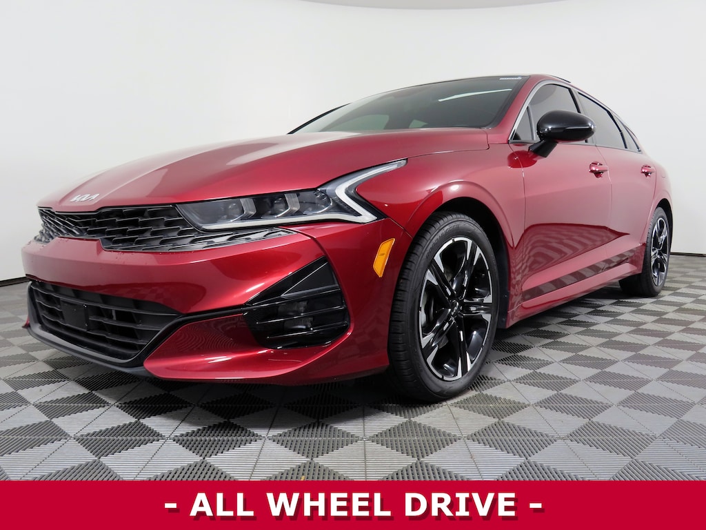 CARFAX One-Owner. Passion Red 2024 Kia K5 GT-Line AWD 8-Speed Automatic 1.6L I4 DGI Turbocharged DOHC 16V LEV3-ULEV70 180hp