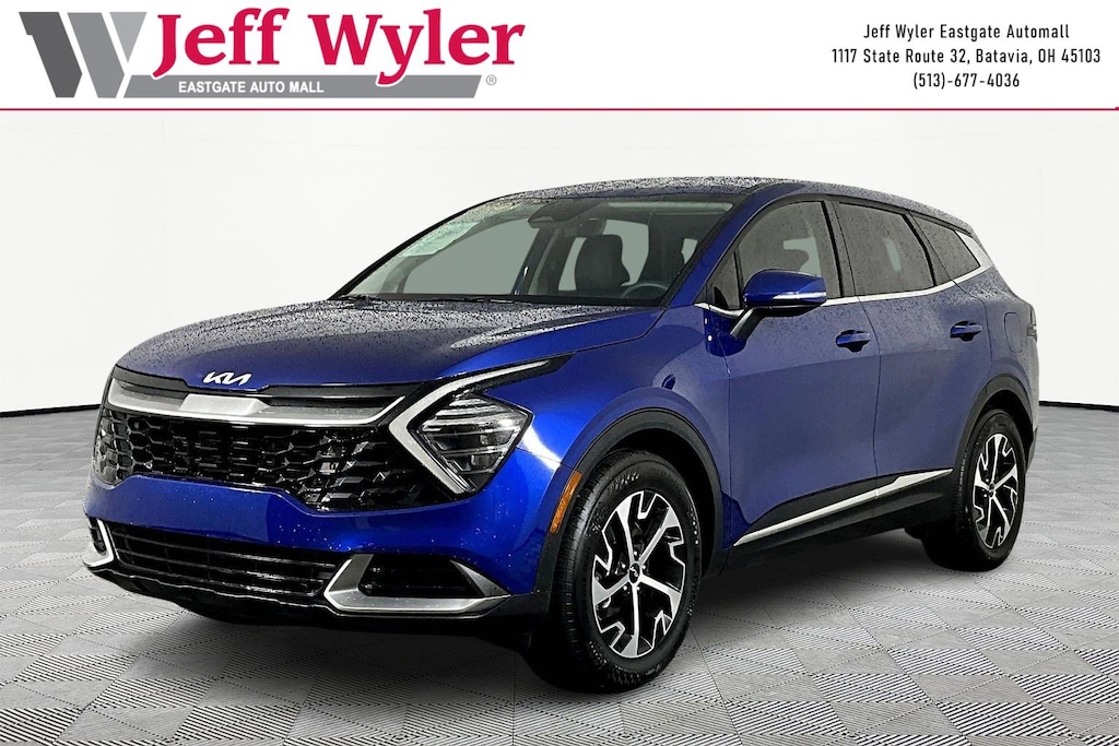 Jeff Wyler Eastgate Auto Mall is proud to offer this gorgeous-looking 2025 Kia Sportage EX in Sapphire Blue. Well equipped with: 4-Wheel Disc Brakes, 6 Speakers, ABS brakes, Air Conditioning, Alloy wheels, AM/FM radio: SiriusXM, Apple CarPlay & Android Auto, Auto High-beam Headlights, Automatic temperature control, Brake assist, Bumpers: body-color, Carpeted Floor Mats, Compass, Delay-off headlights, Driver door bin, Driver vanity mirror, Dual front impact airbags, Dual front side impact airbags, Electronic Stability Control, Emergency communication system, Four wheel independent suspension, Front anti-roll bar, Front Bucket Seats, Front Center Armrest, Front dual zone A/C, Fully automatic headlights, Heated door mirrors, Heated Front Bucket Seats, Heated front seats, Illuminated entry, Leather Shift Knob, Leather steering wheel, Leatherette Seat Trim, Low tire pressure warning, Navigation System, Occupant sensing airbag, Outside temperature display, Overhead airbag, Overhead console, Panic alarm, Passenger door bin, Passenger vanity mirror, Power door mirrors, Power driver seat, Power steering, Power windows, Radio: AM/FM/HD Audio System, Rain sensing wipers, Rear anti-roll bar, Rear seat center armrest, Rear side impact airbag, Rear window defroster, Rear window wiper, Remote keyless entry, Security system, Speed control, Speed-sensing steering, Split folding rear seat, Spoiler, Steering wheel mounted audio controls, Tachometer, Telescoping steering wheel, Tilt steering wheel, Traction control, Trip computer, Turn signal indicator mirrors, Variably intermittent wipers, and Wheels: 18" x 7.5J Machined Alloy. CARFAX One-Owner. Clean CARFAX. Ask about available certifications. Used vehicles 10 years of age or newer with less than 100,000 miles are eligible for the Wyler Assurance Program, but eligible vehicles must pass our reconditioning process and multi-point inspection. Provided the vehicle passes inspection, vehicles will be eligible for the 6 month/6,000 mile limited warranty. The 6 month/6,000 mile limited warranty is NOT available on AS-IS vehicles, wholesale vehicles, lease buyback/pass-thru vehicles or un-inspected vehicles. Note that this program can also apply to vehicles where the remaining factory coverage is less than 6 months or 6,000 miles. Please check the Federal Trade Commission (FTC) Buyers guide on the vehicle for full details as to whether or not warranty coverage may apply. Contact Dealer for additional details. The Wyler Assurance 6 month/6,000 Mile limited warranty ends 6 months from the date of the Retail Purchase Agreement (BUYERS ORDER) or when the vehicle's odometer registers 6,000 additional miles to the mileage listed on the BUYERS ORDER, whichever comes first. Your Deductible - The warranty holder on your contract pays the first $100 of each covered repair.