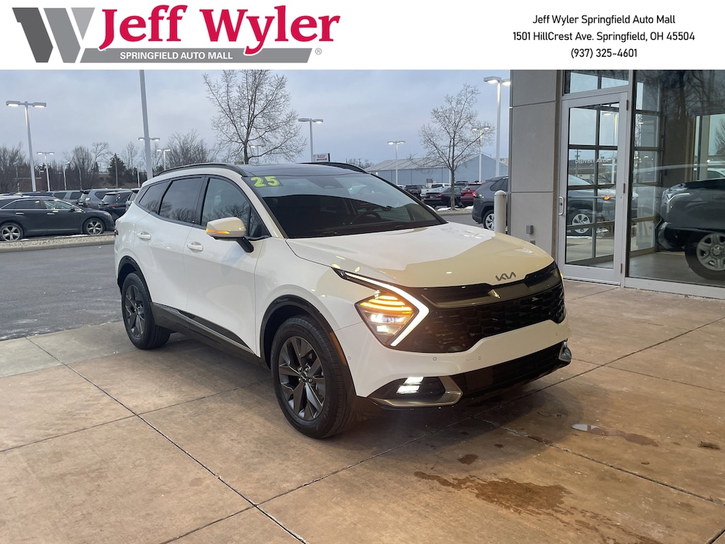 Jeff Wyler Springfield Auto Mall is delighted to offer this gorgeous 2025 Kia Sportage Hybrid SX-Prestige in Snow White Pearl. Well equipped with: 4-Wheel Disc Brakes, 8 Speakers, ABS brakes, Air Conditioning, Alloy wheels, AM/FM radio: SiriusXM, Apple CarPlay & Android Auto, Auto High-beam Headlights, Automatic temperature control, Brake assist, Bumpers: body-color, Carpet Floor Mats, Compass, Delay-off headlights, Driver door bin, Driver vanity mirror, Dual front impact airbags, Dual front side impact airbags, Electronic Stability Control, Emergency communication system, Four wheel independent suspension, Front anti-roll bar, Front Bucket Seats, Front Center Armrest, Front dual zone A/C, Front fog lights, Front reading lights, Fully automatic headlights, harman/kardon® Speakers, Heated & Ventilated Front Bucket Seats, Heated door mirrors, Heated front seats, Heated steering wheel, Illuminated entry, Leather steering wheel, Low tire pressure warning, Memory seat, Navigation System, Occupant sensing airbag, Outside temperature display, Overhead airbag, Overhead console, Panic alarm, Passenger door bin, Passenger vanity mirror, Power door mirrors, Power driver seat, Power Liftgate, Power moonroof, Power passenger seat, Power steering, Power windows, Premium Leatherette Seat Trim, Radio: AM/FM/HD Premium Audio System, Rain sensing wipers, Rear anti-roll bar, Rear reading lights, Rear seat center armrest, Rear side impact airbag, Rear window defroster, Rear window wiper, Remote keyless entry, Security system, Speed control, Speed-sensing steering, Split folding rear seat, Spoiler, Steering wheel mounted audio controls, Tachometer, Telescoping steering wheel, Tilt steering wheel, Traction control, Trip computer, Turn signal indicator mirrors, Variably intermittent wipers, Ventilated front seats, and Wheels: 18" x 7.5J Dark Alloy. Ask about available certifications. Used vehicles 10 years of age or newer with less than 100,000 miles are eligible for the Wyler Assurance Program, but eligible vehicles must pass our reconditioning process and multi-point inspection. Provided the vehicle passes inspection, vehicles will be eligible for the 6 month/6,000 mile limited warranty. The 6 month/6,000 mile limited warranty is NOT available on AS-IS vehicles, wholesale vehicles, lease buyback/pass-thru vehicles or un-inspected vehicles. Note that this program can also apply to vehicles where the remaining factory coverage is less than 6 months or 6,000 miles. Please check the Federal Trade Commission (FTC) Buyers guide on the vehicle for full details as to whether or not warranty coverage may apply. Contact Dealer for additional details. The Wyler Assurance 6 month/6,000 Mile limited warranty ends 6 months from the date of the Retail Purchase Agreement (BUYERS ORDER) or when the vehicle's odometer registers 6,000 additional miles to the mileage listed on the BUYERS ORDER, whichever comes first. Your Deductible - The warranty holder on your contract pays the first $100 of each covered repair.