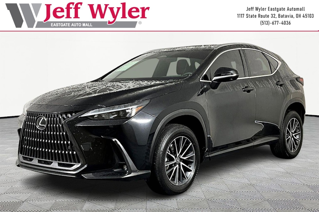 Jeff Wyler Eastgate Auto Mall is very proud to offer this great 2023 Lexus NX 350h Premium in White. Well equipped with: 10 Speakers, 18" Wheels, 4-Wheel Disc Brakes, ABS brakes, Air Conditioning, Alloy wheels, AM/FM radio: SiriusXM, Anti-whiplash front head restraints, Auto High-beam Headlights, Auto Rain Sensing Windshield Wipers, Auto tilt-away steering wheel, Auto-dimming door mirrors, Auto-dimming Rear-View mirror, Automatic temperature control, Axle Ratio: 10.781, Brake assist, Bumpers: body-color, Clear Door Trim, Delay-off headlights, Driver door bin, Driver vanity mirror, Dual front impact airbags, Dual front side impact airbags, Electronic Stability Control, Emergency communication system: Safety Connect (up to 10-year trial subscription included), Exterior Parking Camera Rear, Four wheel independent suspension, Front anti-roll bar, Front Bucket Seats, Front Center Armrest, Front dual zone A/C, Front fog lights, Front reading lights, Fully automatic headlights, Garage door transmitter: HomeLink, Heated & Ventilated Front Bucket Seats, Heated door mirrors, Heated front seats, Illuminated entry, Kick Auto Open/Close Door, Knee airbag, Leather Shift Knob, Low tire pressure warning, Memory seat, Navigation system: Drive Connect Cloud Navigation (subscription required), NuLuxe Seat Trim, Occupant sensing airbag, Outside temperature display, Overhead airbag, Overhead console, Panic alarm, Parking Support Alert/Brake, Passenger door bin, Passenger vanity mirror, Power door mirrors, Power driver seat, Power Liftgate, Power moonroof, Power passenger seat, Power steering, Power Tilt & Slide Moonroof/Sunroof, Power windows, Radio data system, Radio: 10-Speaker Sound System, Rain sensing wipers, Rear anti-roll bar, Rear reading lights, Rear seat center armrest, Rear window defroster, Rear window wiper, Remote keyless entry, Roof rack: rails only, Security system, Speed control, Speed-sensing steering, Speed-Sensitive Wipers, Split folding rear seat, Spoiler, Steering wheel memory, Steering wheel mounted audio controls, Tachometer, Telescoping steering wheel, Tilt steering wheel, Traction control, Trip computer, Turn signal indicator mirrors, Variably intermittent wipers, Ventilated front seats, Wireless Apple CarPlay/Wireless Android Auto, and Wireless Smart Door Lock. CARFAX One-Owner. Clean CARFAX. Ask about available certifications. Used vehicles 10 years of age or newer with less than 100,000 miles are eligible for the Wyler Assurance Program, but eligible vehicles must pass our reconditioning process and multi-point inspection. Provided the vehicle passes inspection, vehicles will be eligible for the 6 month/6,000 mile limited warranty. The 6 month/6,000 mile limited warranty is NOT available on AS-IS vehicles, wholesale vehicles, lease buyback/pass-thru vehicles or un-inspected vehicles. Note that this program can also apply to vehicles where the remaining factory coverage is less than 6 months or 6,000 miles. Please check the Federal Trade Commission (FTC) Buyers guide on the vehicle for full details as to whether or not warranty coverage may apply. Contact Dealer for additional details. The Wyler Assurance 6 month/6,000 Mile limited warranty ends 6 months from the date of the Retail Purchase Agreement (BUYERS ORDER) or when the vehicle's odometer registers 6,000 additional miles to the mileage listed on the BUYERS ORDER, whichever comes first. Your Deductible - The warranty holder on your contract pays the first $100 of each covered repair.