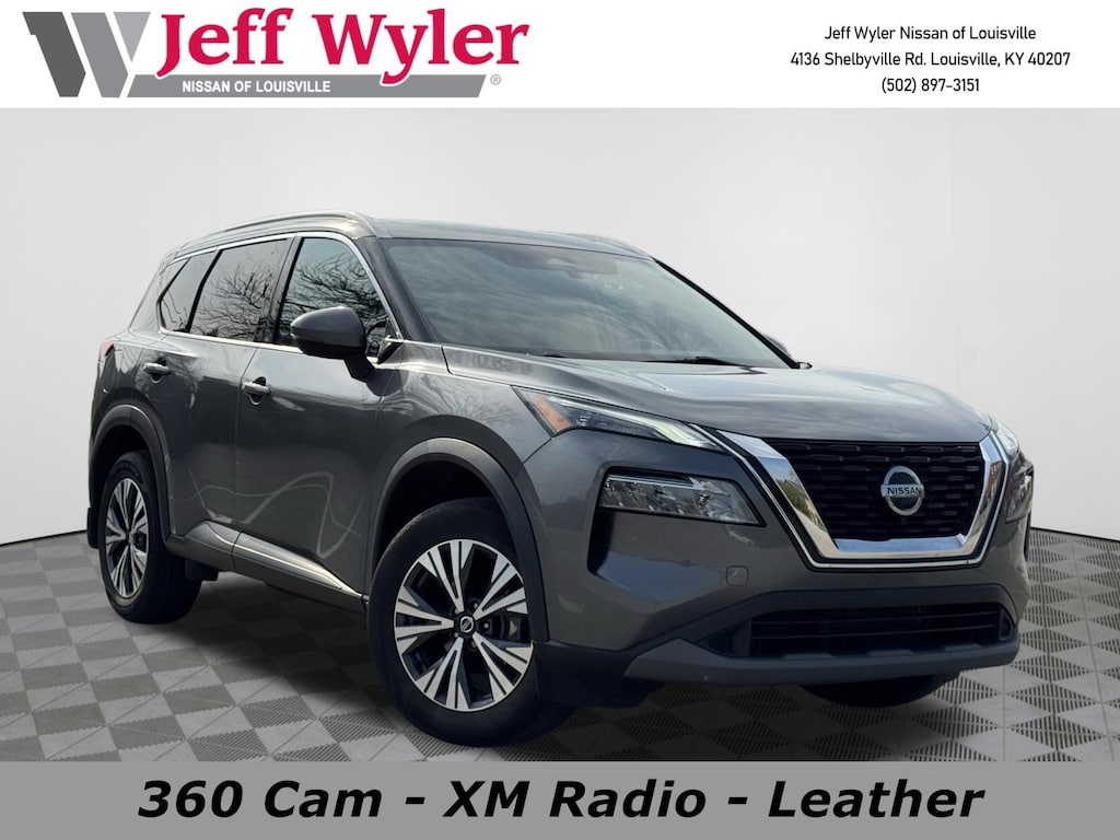 Jeff Wyler Nissan of Louisville is honored to offer this superb 2021 Nissan Rogue SV in Gun Metallic. ** ALL WHEEL DRIVE/AWD **, ** BLUETOOTH **, ** SUNROOF/MOONROOF **, ** BACKUP CAMERA **, ** PUSH-BUTTON START **, ** GREAT FUEL ECONOMY **, ** EXCELLENT SERVICE HISTORY **, ** LOCALLY OWNED **, and ** HOME DELIVERY OPTIONS! ** Premium Package (Heated Driver & Front Passenger Seats, Heated Leather-Wrapped Steering Wheel, Leatherette Seat Trim, Power Liftgate, Power Panoramic Moonroof, Roof Rails, and Second Row Sunshades), AWD, 18" Aluminum Alloy Wheels, 4-Wheel Disc Brakes, 5.604 Axle Ratio, 6 Speakers, ABS brakes, Air Conditioning, Alloy wheels, AM/FM Radio, AM/FM radio, Auto High-beam Headlights, Automatic temperature control, Black Splash Guards (Set of 4), Brake assist, Bumpers: body-color, Chrome Rear Bumper Protector, Cloth Seat Trim, Delay-off headlights, Driver door bin, Driver vanity mirror, Dual front impact airbags, Dual front side impact airbags, Electronic Stability Control, Emergency communication system: NissanConnect Services, First Aid Kit, Floor Mats w/1-Piece Cargo Area Protector, Four wheel independent suspension, Front anti-roll bar, Front Bucket Seats, Front Center Armrest, Front dual zone A/C, Front reading lights, Fully automatic headlights, Heated door mirrors, Illuminated entry, Knee airbag, Low tire pressure warning, NissanConnect featuring Apple CarPlay and Android Auto, Occupant sensing airbag, Outside temperature display, Overhead airbag, Overhead console, Panic alarm, Passenger door bin, Passenger vanity mirror, Power door mirrors, Power driver seat, Power steering, Power windows, Radio data system, Rear anti-roll bar, Rear Parking Sensors, Rear seat center armrest, Rear side impact airbag, Rear window defroster, Rear window wiper, Remote keyless entry, Security system, Speed control, Speed-Sensitive Wipers, Split folding rear seat, Spoiler, Steering wheel mounted audio controls, Tachometer, Telescoping steering wheel, Tilt steering wheel, Traction control, Trip computer, Turn signal indicator mirrors, and Variably intermittent wipers Our PRE-OWNED vehicles are put through a rigorous 167- POINT QUALITY ASSURANCE INSPECTION along with an average amount of over $1,400.00 SPENT to recondition each vehicle so we can be sure to deliver you the highest quality vehicle like you deserve! ***ONLINE PRICE DOES NOT INCLUDE WYLER FAMILY FIRST PACKAGE*** Stop by 4136 Shelbyville Road to see for yourself, or give us a call @ 502-897-3151 to schedule your test drive! ** ALL WHEEL DRIVE/AWD **, ** BLUETOOTH **, ** SUNROOF/MOONROOF **, ** BACKUP CAMERA **, ** PUSH-BUTTON START **, ** GREAT FUEL ECONOMY **, ** EXCELLENT SERVICE HISTORY **, ** LOCALLY OWNED **, AWD, 18" Aluminum Alloy Wheels, 4-Wheel Disc Brakes, 5.604 Axle Ratio, 6 Speakers, ABS brakes, Air Conditioning, Alloy wheels, AM/FM Radio, AM/FM radio, Auto High-beam Headlights, Automatic temperature control, Black Splash Guards (Set of 4), Brake assist, Bumpers: body-color, Chrome Rear Bumper Protector, Cloth Seat Trim, Delay-off headlights, Driver door bin, Driver vanity mirror, Dual front impact airbags, Dual front side impact airbags, Electronic Stability Control, Emergency communication system: NissanConnect Services, First Aid Kit, Floor Mats w/1-Piece Cargo Area Protector, Four wheel independent suspension, Front anti-roll bar, Front Bucket Seats, Front Center Armrest, Front dual zone A/C, Front reading lights, Fully automatic headlights, Heated door mirrors, Heated Driver & Front Passenger Seats, Heated Leather-Wrapped Steering Wheel, Illuminated entry, Knee airbag, Leatherette Seat Trim, Low tire pressure warning, NissanConnect featuring Apple CarPlay and Android Auto, Occupant sensing airbag, Outside temperature display, Overhead airbag, Overhead console, Panic alarm, Passenger door bin, Passenger vanity mirror, Power door mirrors, Power driver seat, Power Liftgate, Power Panoramic Moonroof, Power steering, Power windows, Premium Package, Radio d