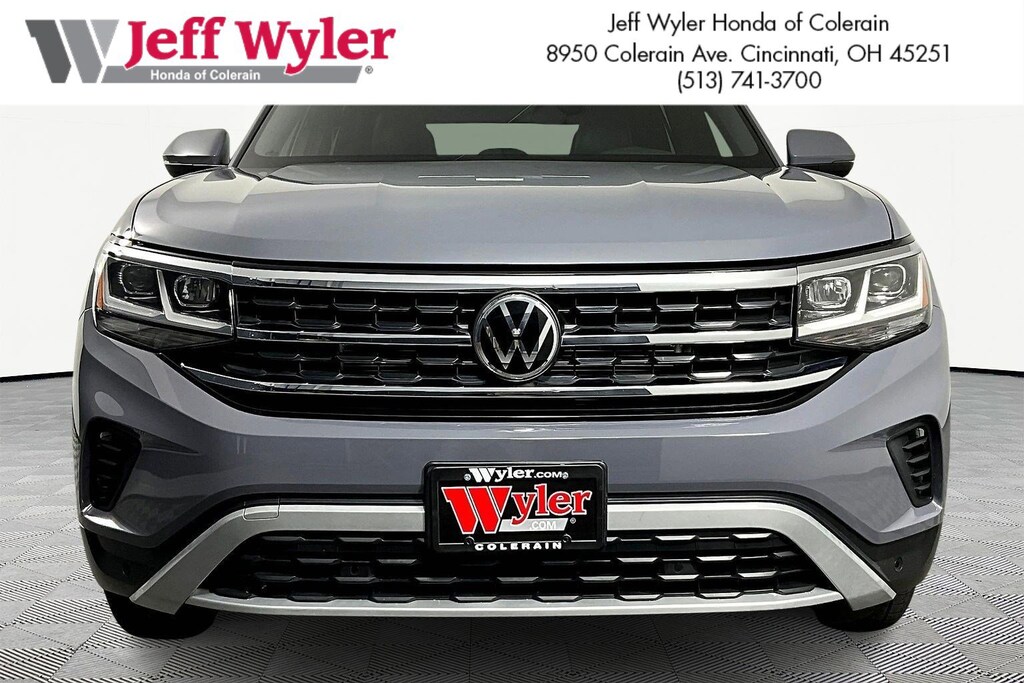 Jeff Wyler Honda of Colerain is delighted to offer this wonderful-looking 2020 Volkswagen Atlas Cross Sport 2.0T SEL in Gray. Well equipped with: 3.60 Axle Ratio, 4-Wheel Disc Brakes, 6 Speakers, ABS brakes, Active Blind Spot Monitor, Air Conditioning, Alloy wheels, AM/FM radio: SiriusXM, Auto High-beam Headlights, Auto-dimming Rear-View mirror, Automatic temperature control, Brake assist, Bumpers: body-color, Compass, Delay-off headlights, Driver door bin, Driver vanity mirror, Dual front impact airbags, Dual front side impact airbags, Electronic Stability Control, Emergency communication system: VW Car-Net services (capabilities require enrollment or subscription), Exterior Parking Camera Rear, Four wheel independent suspension, Front anti-roll bar, Front Bucket Seats, Front Center Armrest, Front dual zone A/C, Front fog lights, Front reading lights, Fully automatic headlights, Heated Comfort Front Bucket Seats, Heated door mirrors, Heated front seats, Heated steering wheel, Heavy Duty Trunk Liner w/VW CarGo Blocks, Illuminated entry, Leather Shift Knob, Low tire pressure warning, Memory seat, Navigation System, Occupant sensing airbag, Outside temperature display, Overhead airbag, Overhead console, Panic alarm, Passenger door bin, Passenger vanity mirror, Power door mirrors, Power driver seat, Power Liftgate, Power moonroof, Power passenger seat, Power steering, Power windows, Radio data system, Radio: Discover Media w/8.0" Touchscreen Nav, Rain sensing wipers, Rear anti-roll bar, Rear reading lights, Rear seat center armrest, Rear window defroster, Rear window wiper, Remote CD player, Remote keyless entry, Roadside Assistance Kit, Roof rack: rails only, Rubber Mats Kit, Security system, Speed control, Speed-sensing steering, Split folding rear seat, Spoiler, Standard Suspension, Steering wheel mounted audio controls, Tachometer, Telescoping steering wheel, Tilt steering wheel, Traction control, Trip computer, Turn signal indicator mirrors, V-Tex Leatherette Seating Surfaces, Variably intermittent wipers, VW App-Connect (w/Apple CarPlay, Android Auto & MirrorLink), VW Care, and Wheels: 20" 5-Spoke Silver Alloy (V71)